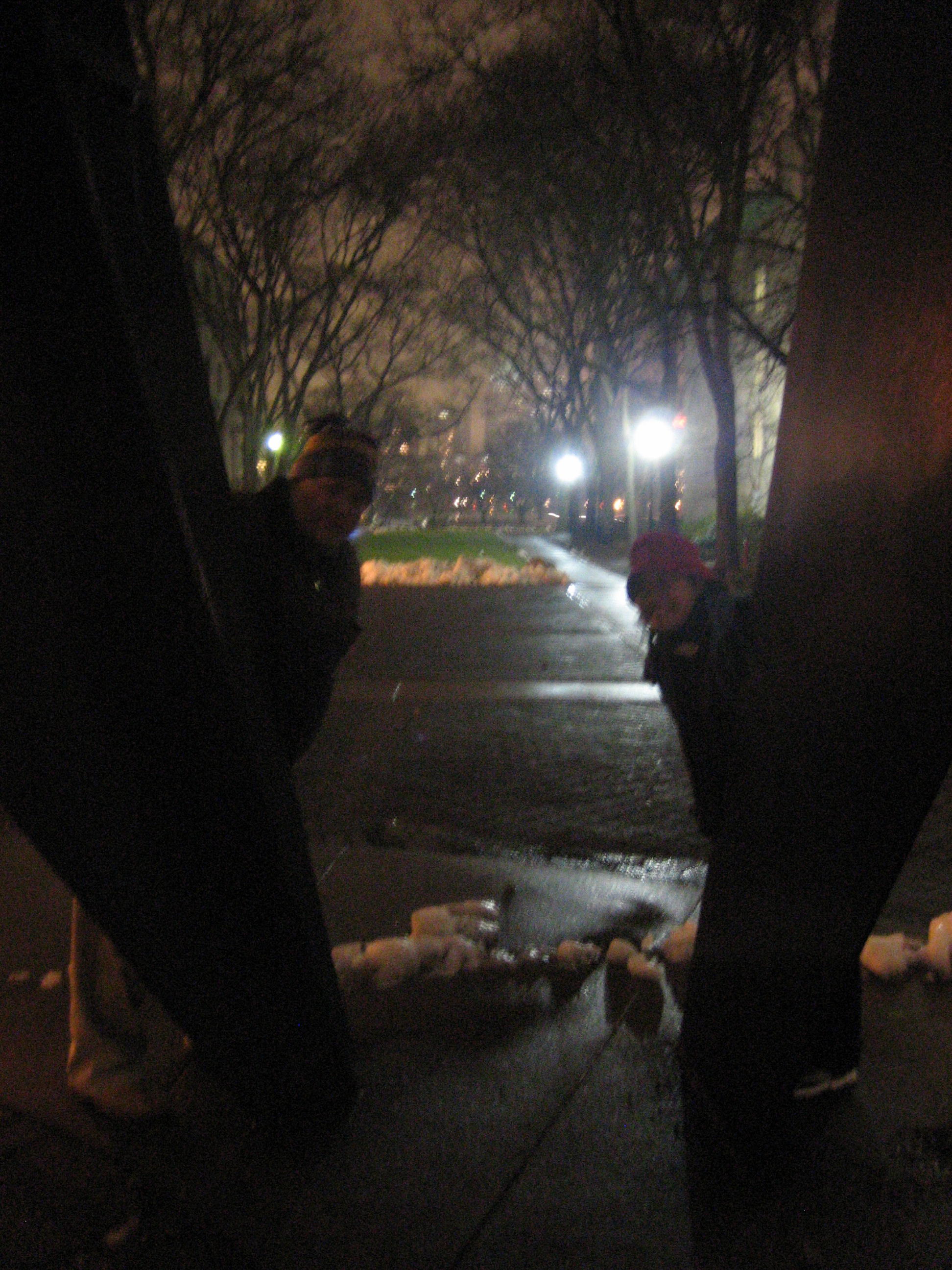 It was a dark and stormy night when Burn Unit came to town, but we nevertheless headed to MIT. Coincidentally, we found that the students had created two larger-than-life sized games on campus. A giant game of Scrabble was up on the Media Lab building, and a huge Settlers of Catan game was on the dot. (The dot is a round grassy area surrounded by pavement stones between the Green Building and the Great Sail.)