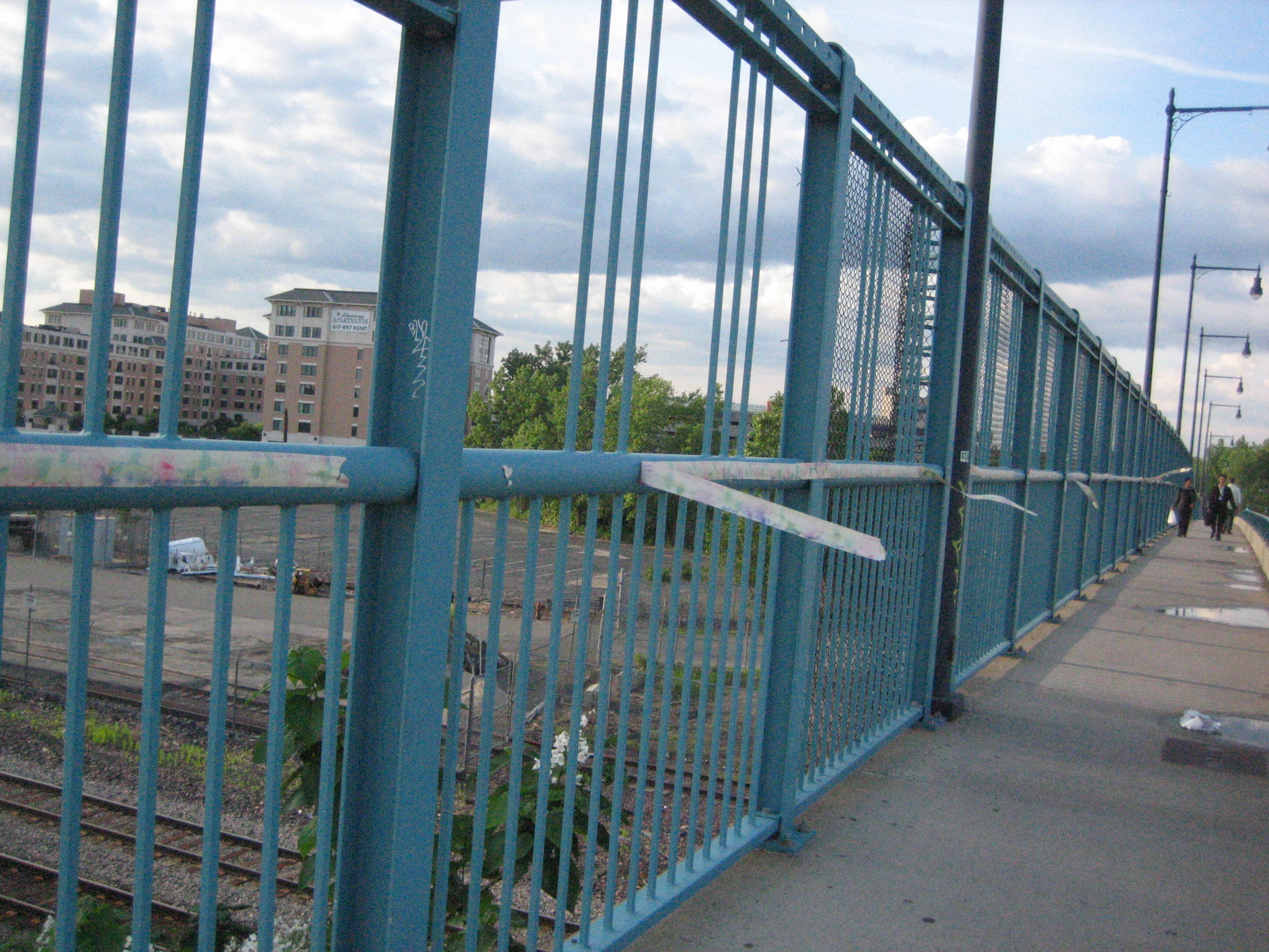 I deployed the strip of repetition onto a railing along a bridge near the Alewife subway stop. As I was installing it, the rumbling of passing trucks made the entire bridge shake, reminding me of thunder. I watched people walking along the bridge for a while. Mostly, they didn't even glance at the installation, but a few stopped and read some of it. I checked back 12 and 24 hours later, and most of the strip is still up, although a 1 ft section is missing. The paper has already yellowed from being out in the sun, but I'm happy to have injected some poetry onto an otherwise boring bridge.