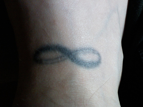 I had just enough for a little tat and I wanted one badly. Badly enough even to fabricate some story about being at a party and having my license stolen, but assuring the lone artist in the dimly lit place that I was 18, and no way would he get in trouble for doing such a little bit of work as my mobius strip.