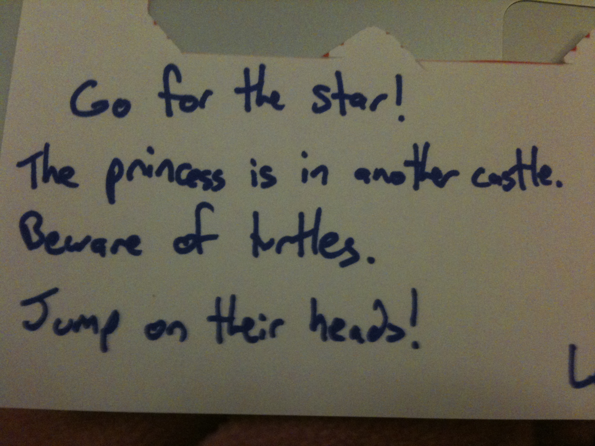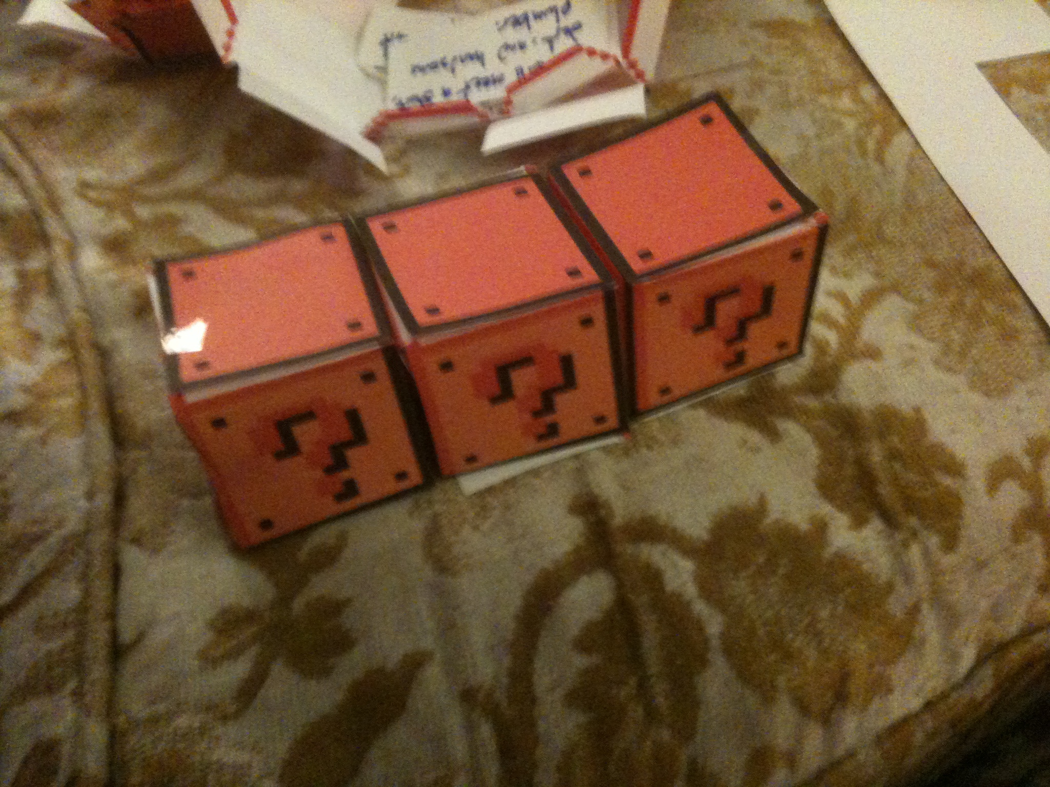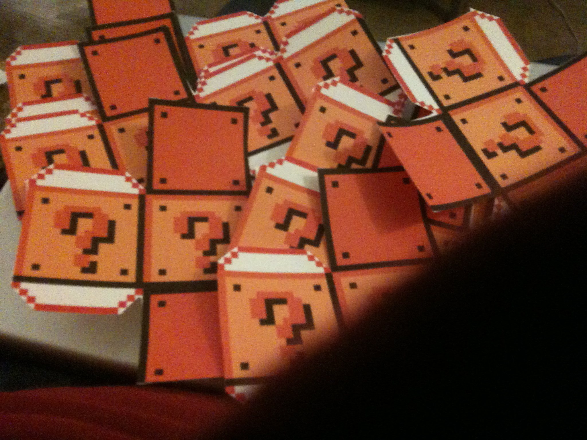 I then wrote out ten Mario-themed fortunes, one for each block.
