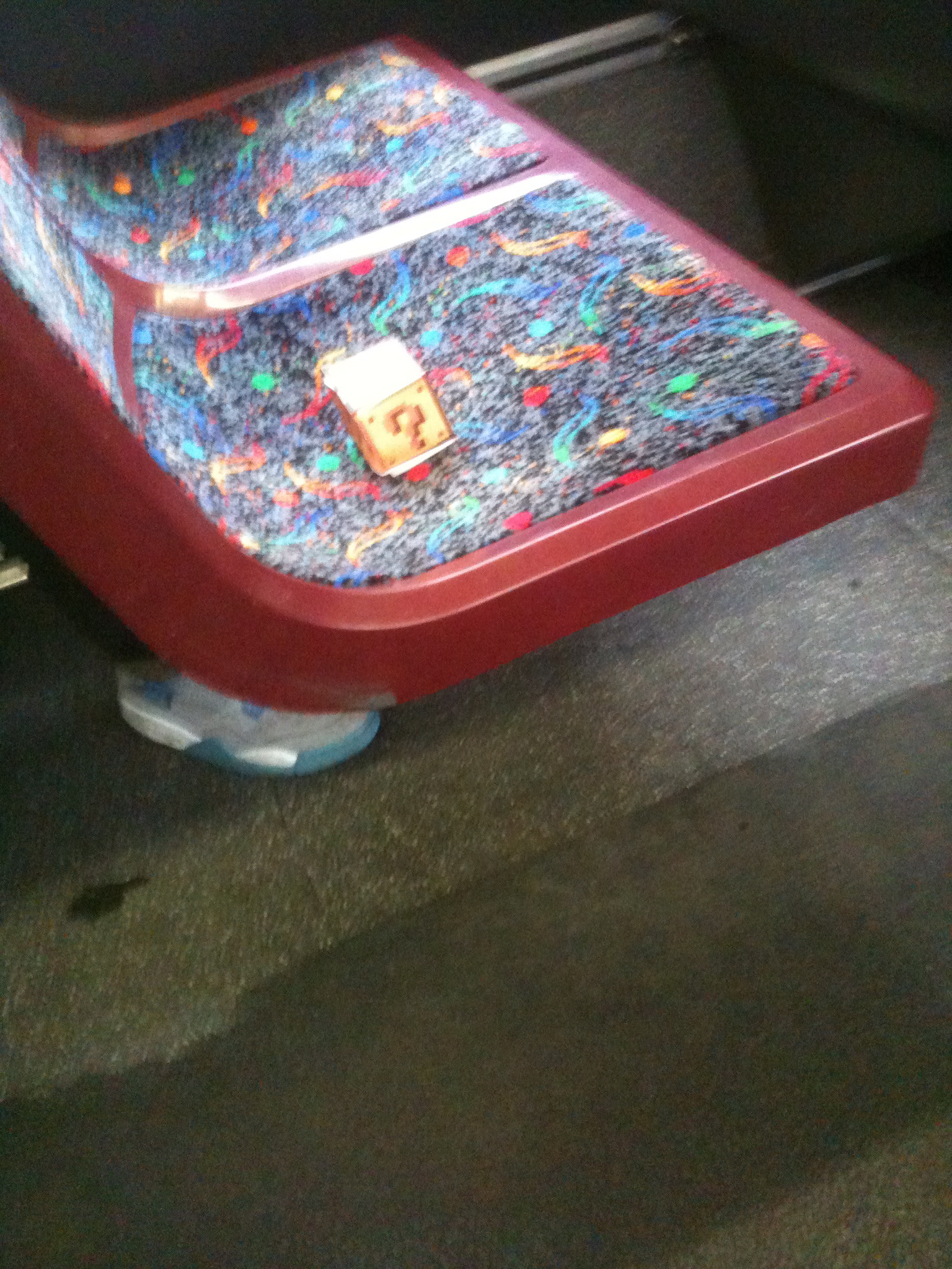 Now to release them into the wild. I had an errand to run by bus, so I decided that I would leave them mostly on buses and at bus stops. This was the first one: