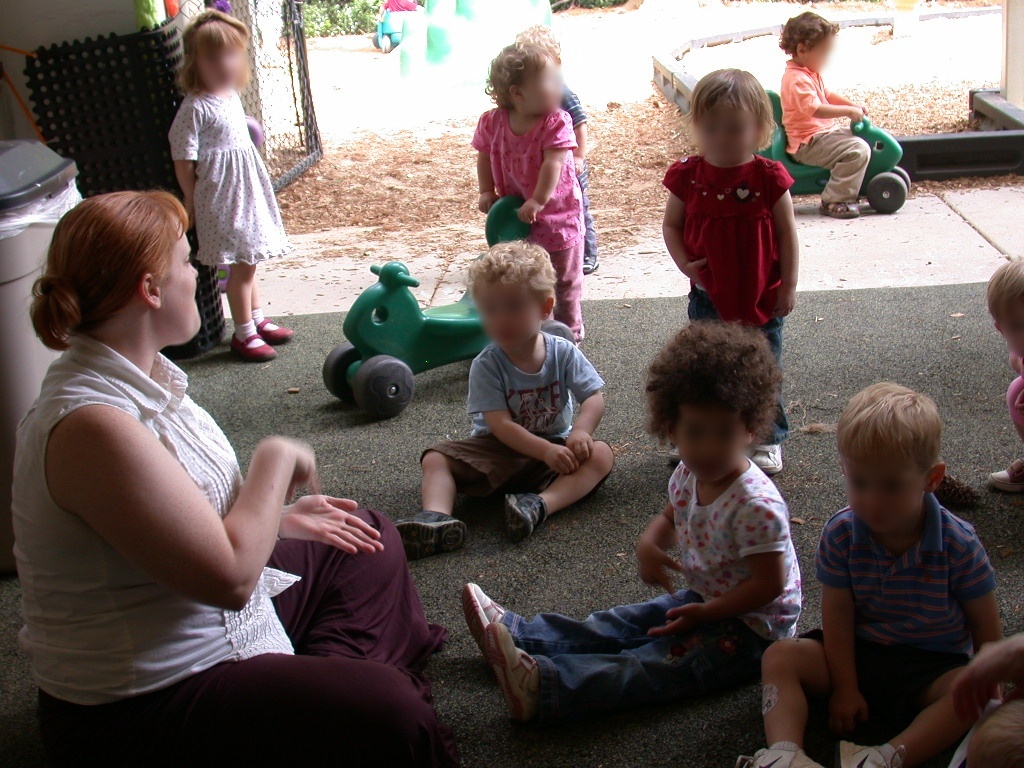 Ironically, this was a very moving moment for me. I love working with young children and sitting on the floor is the best choice for this most of the time. One of my favorite spots is just outside, on the rubber fill matting, sitting and singing and signing.