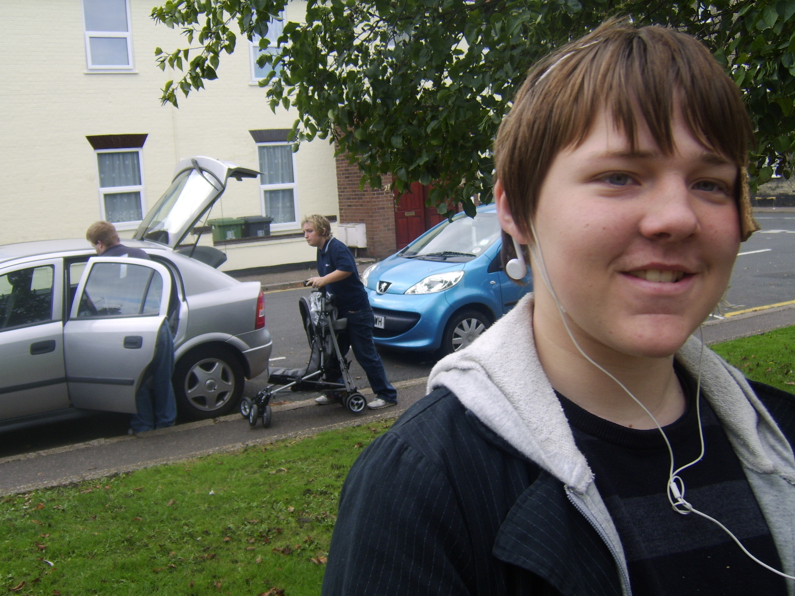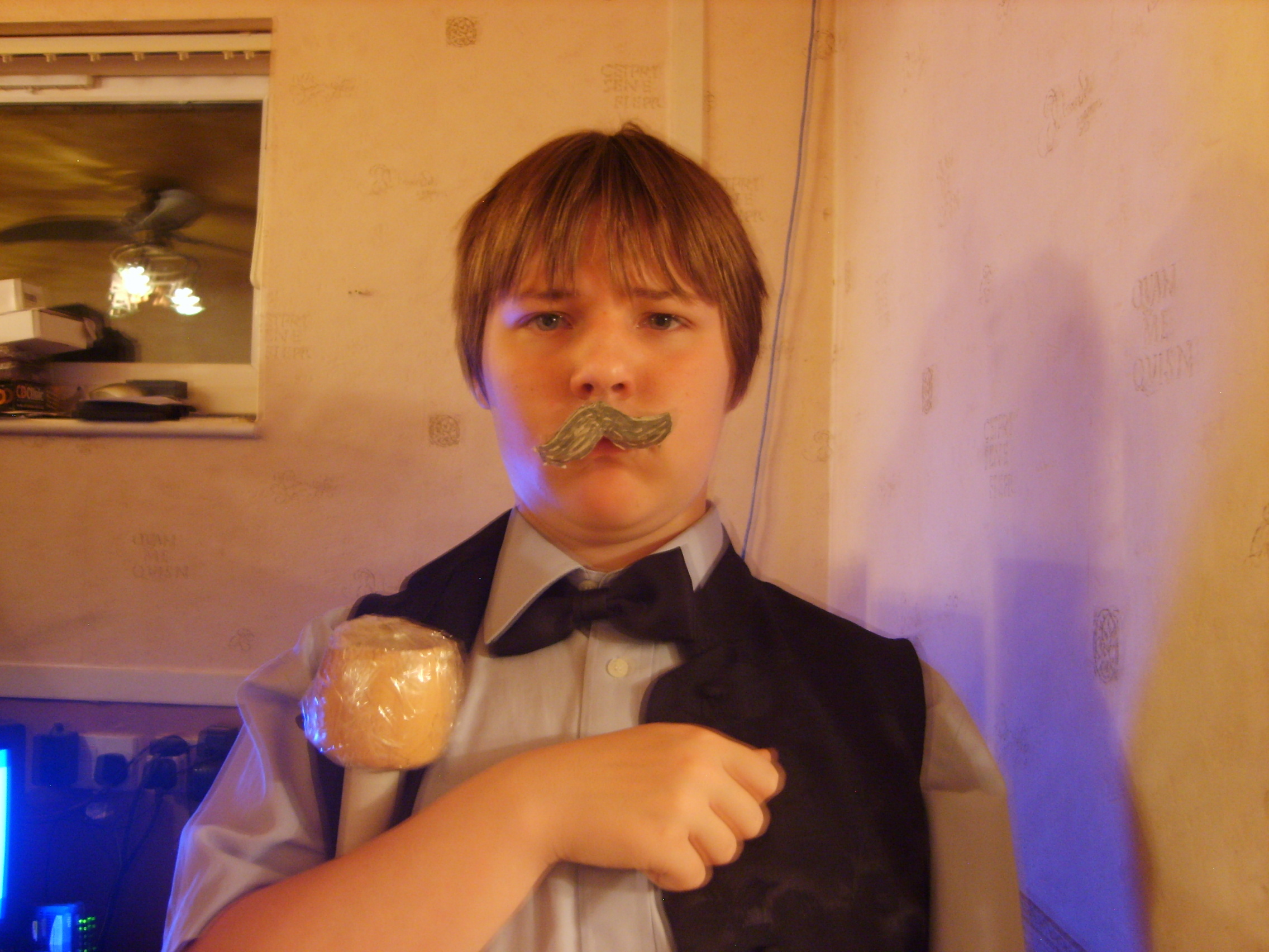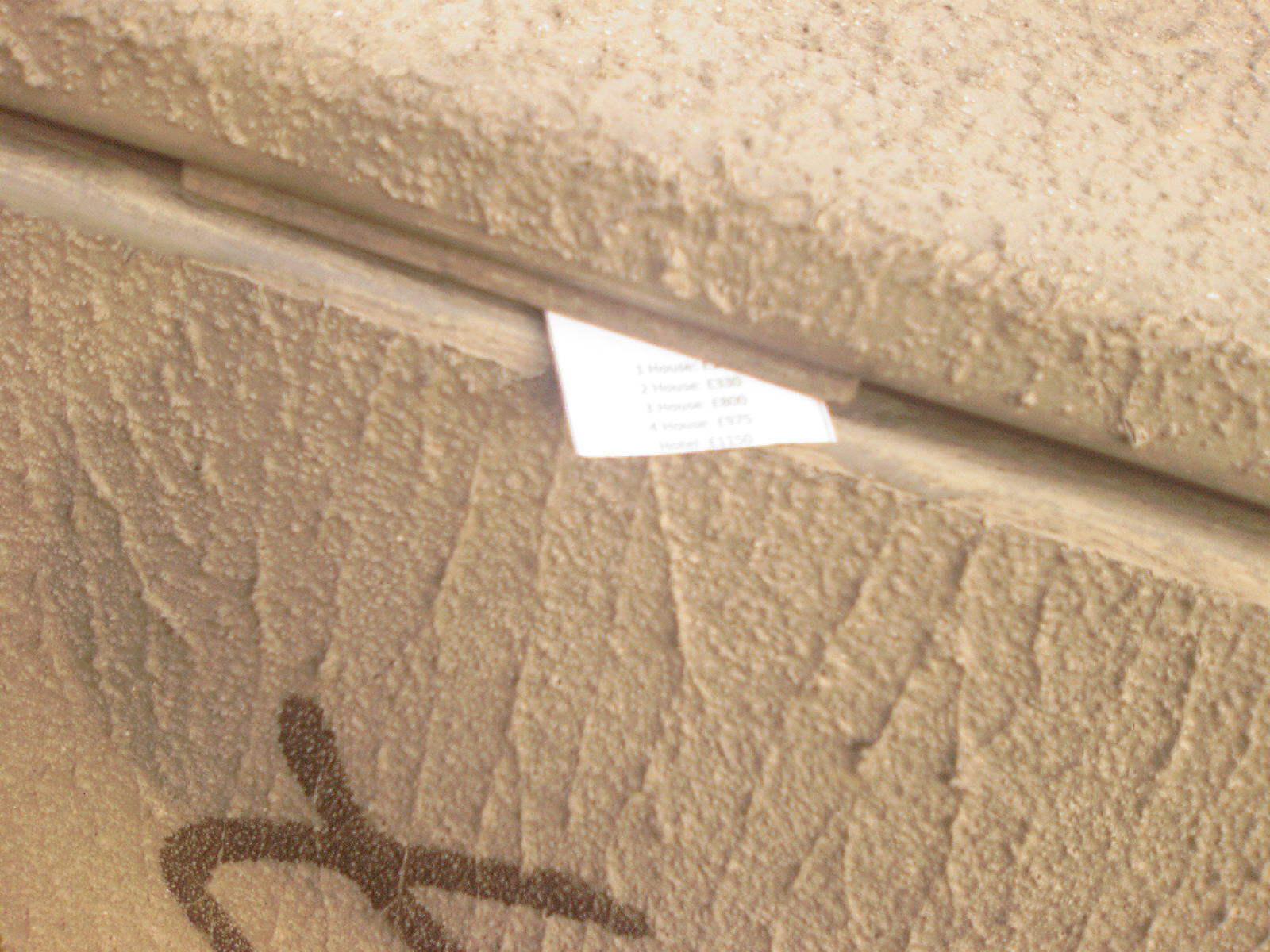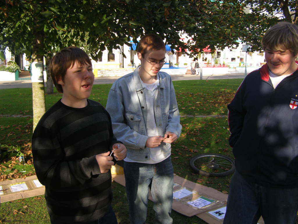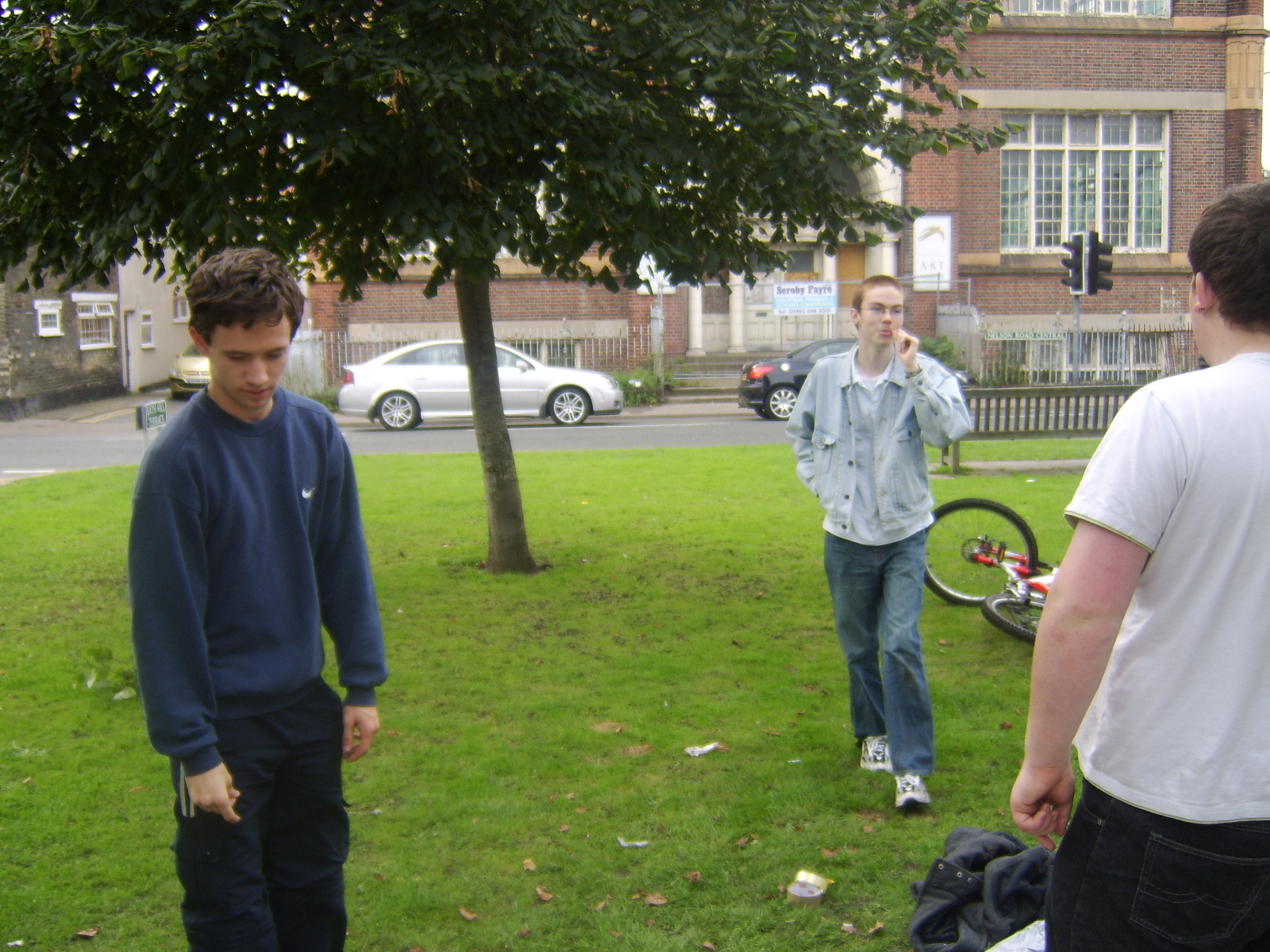 People then began turning up. Finally Brett arrived (last) and we were about to leave, when disaster struck! My parents arrived, and would not approve of the removal of their cardboard for creation of a large Monopoly board, so the door to the room full of cardboard was closed and obstructed and we helped unload the shopping. We then had to try and sneak the cardboard out of the house, and behind the front garden wall, which would shield it from view. We managed to get out the suitcase, and about two thirds of the remaining cardboard, and then we were chased away; luckily the room wasn't checked, so we got away.