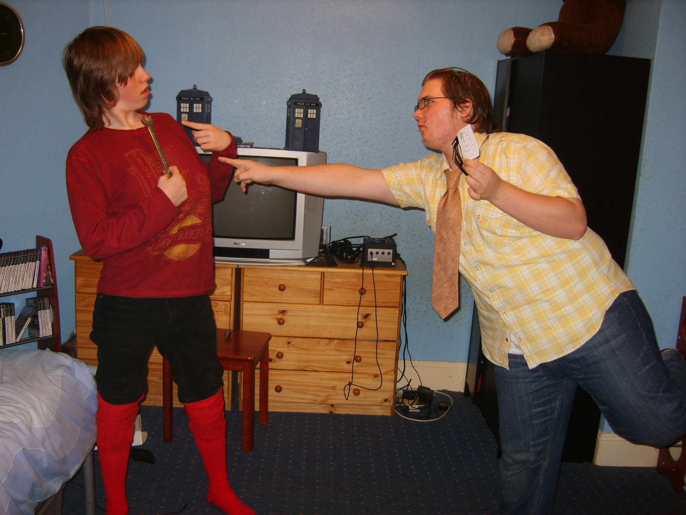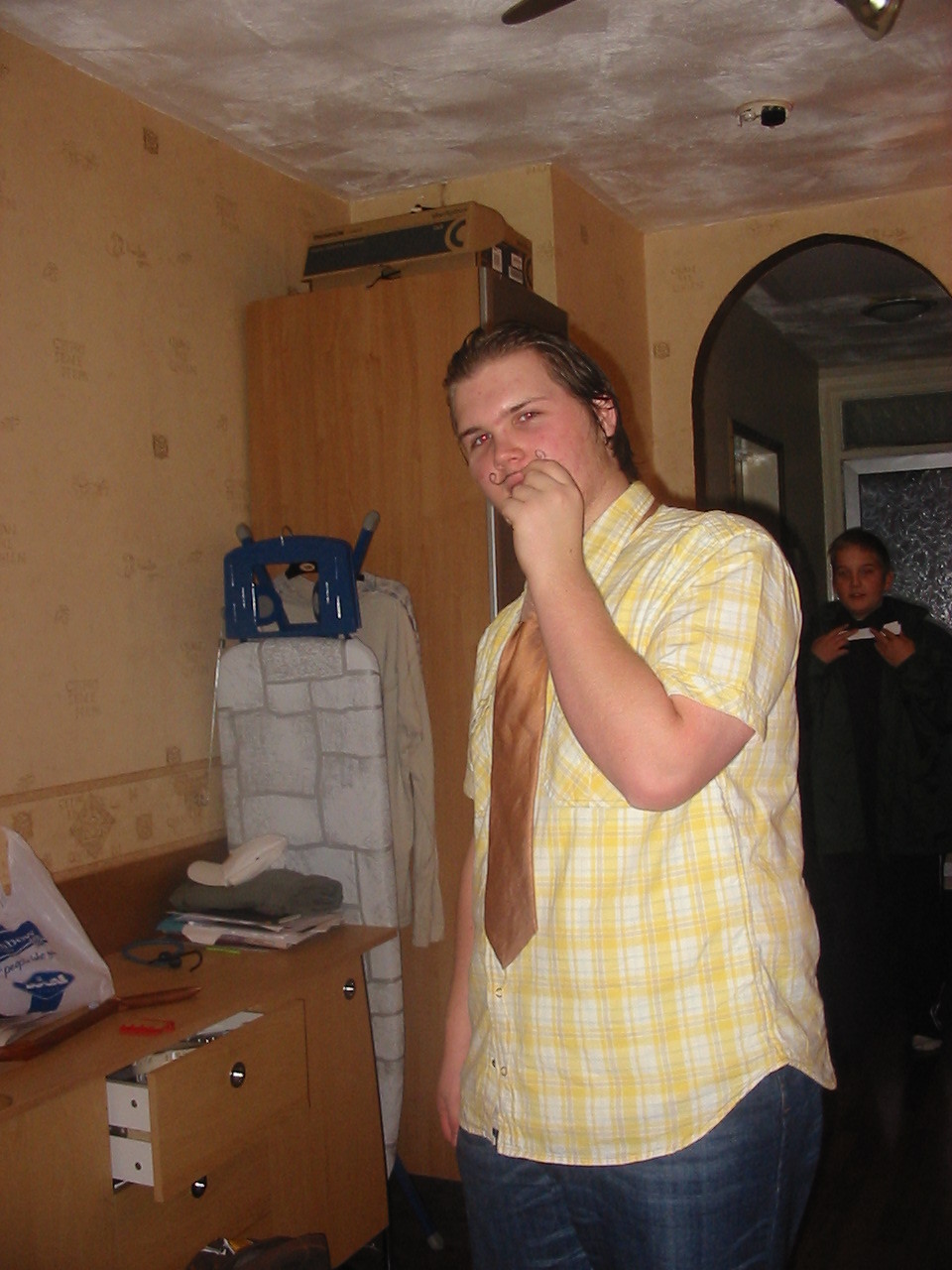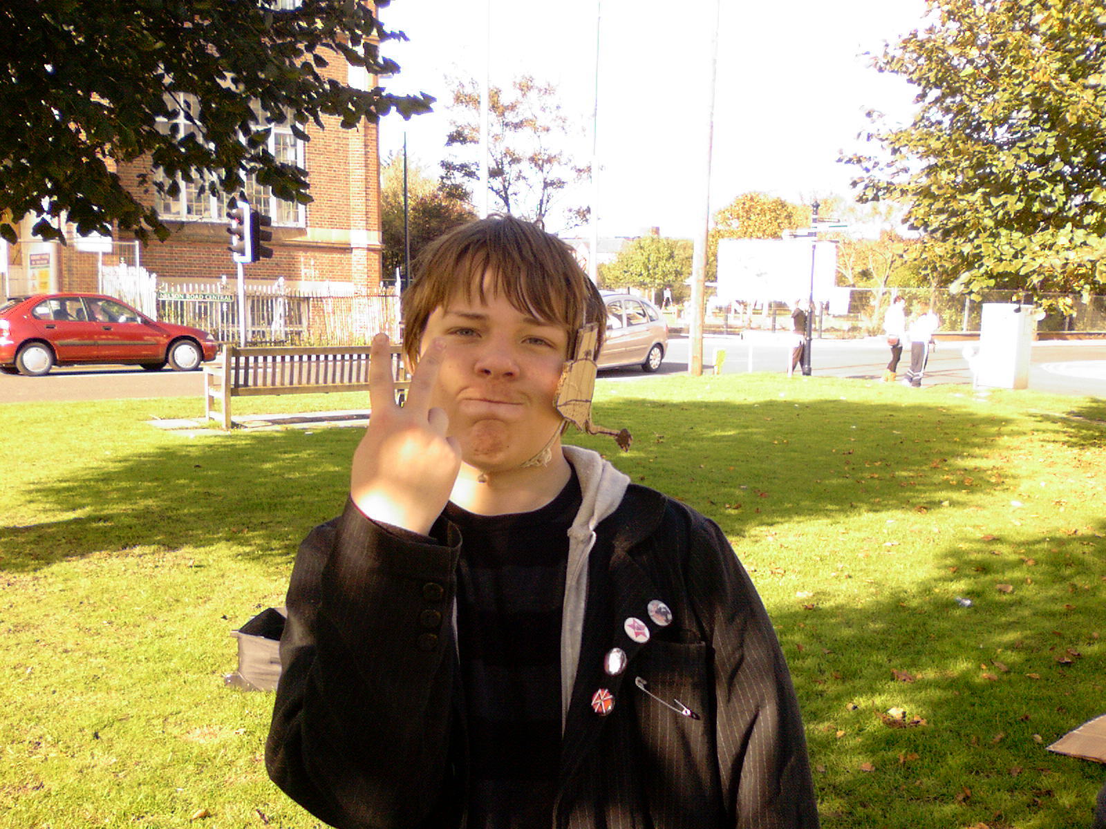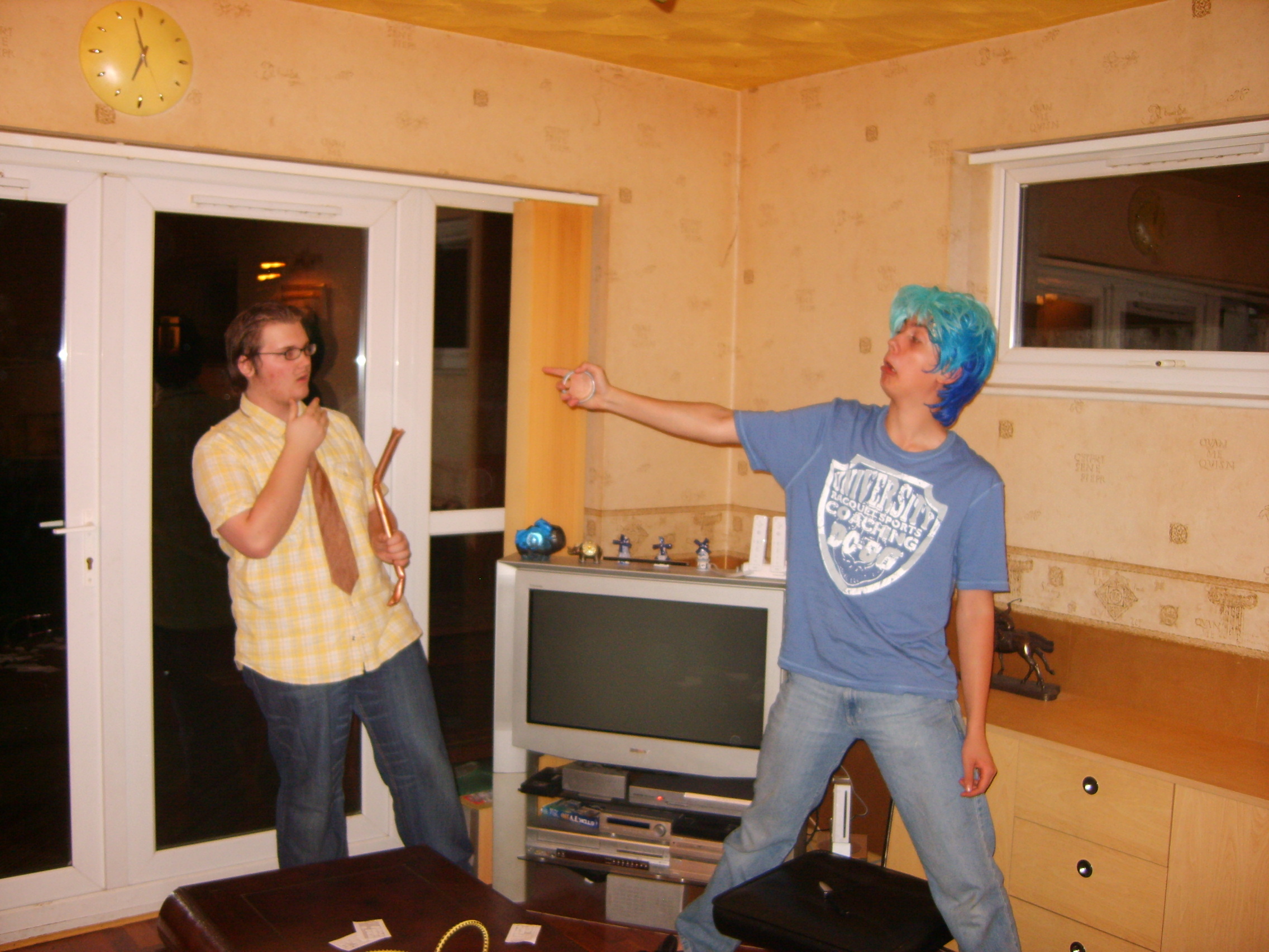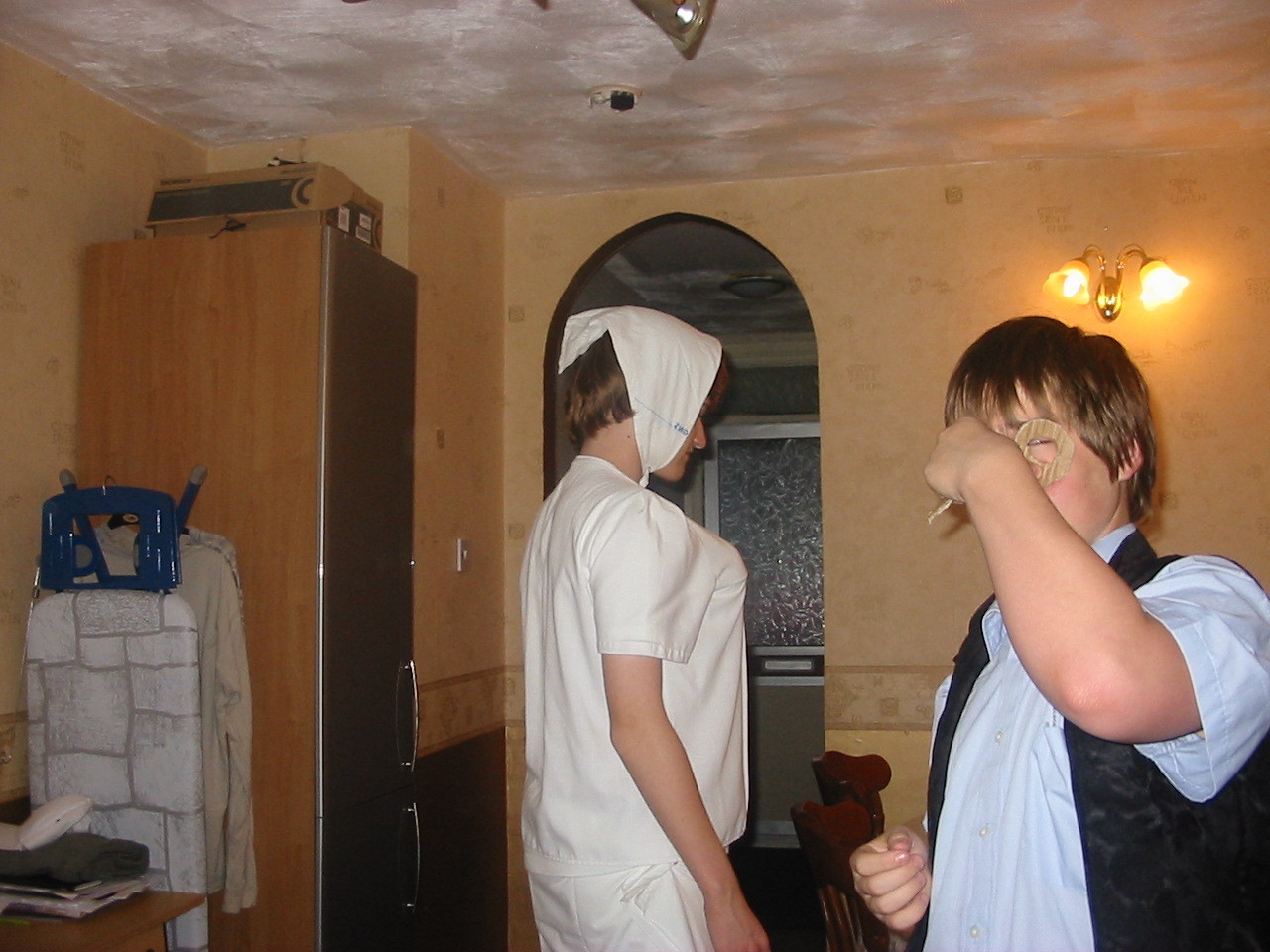 People then began turning up. Finally Brett arrived (last) and we were about to leave, when disaster struck! My parents arrived, and would not approve of the removal of their cardboard for creation of a large Monopoly board, so the door to the room full of cardboard was closed and obstructed and we helped unload the shopping. We then had to try and sneak the cardboard out of the house, and behind the front garden wall, which would shield it from view. We managed to get out the suitcase, and about two thirds of the remaining cardboard, and then we were chased away; luckily the room wasn't checked, so we got away.