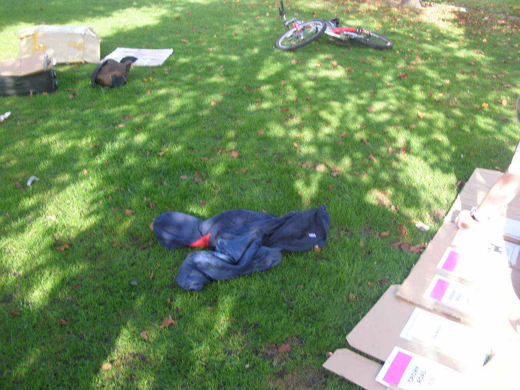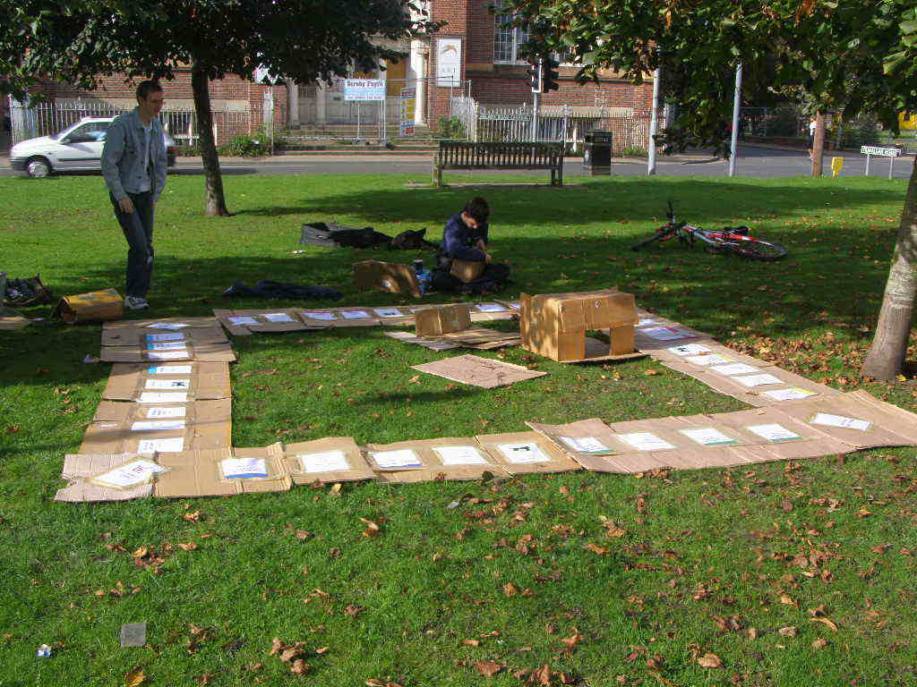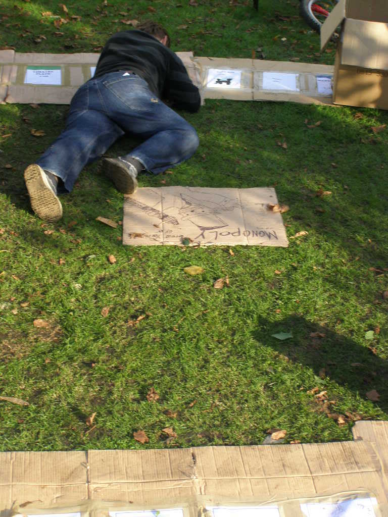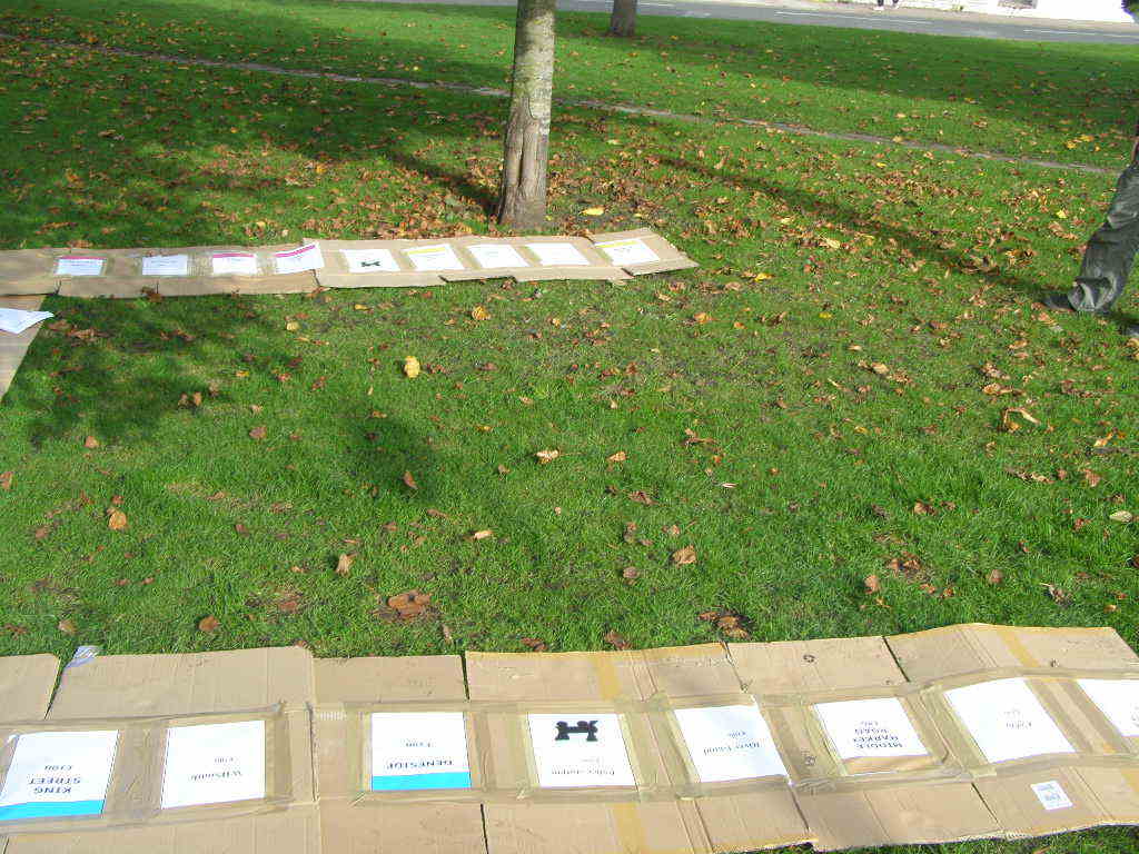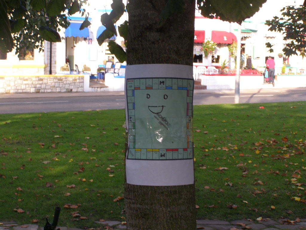 We arrived at our location, a patch of grass in front of the deserted art college, all ready to start Monopolizing. It's a very public location, on a main road, and surrounded by residential and guest housing. We began getting observers from the guest houses almost immediately, which should have added a little interest into some holidays.