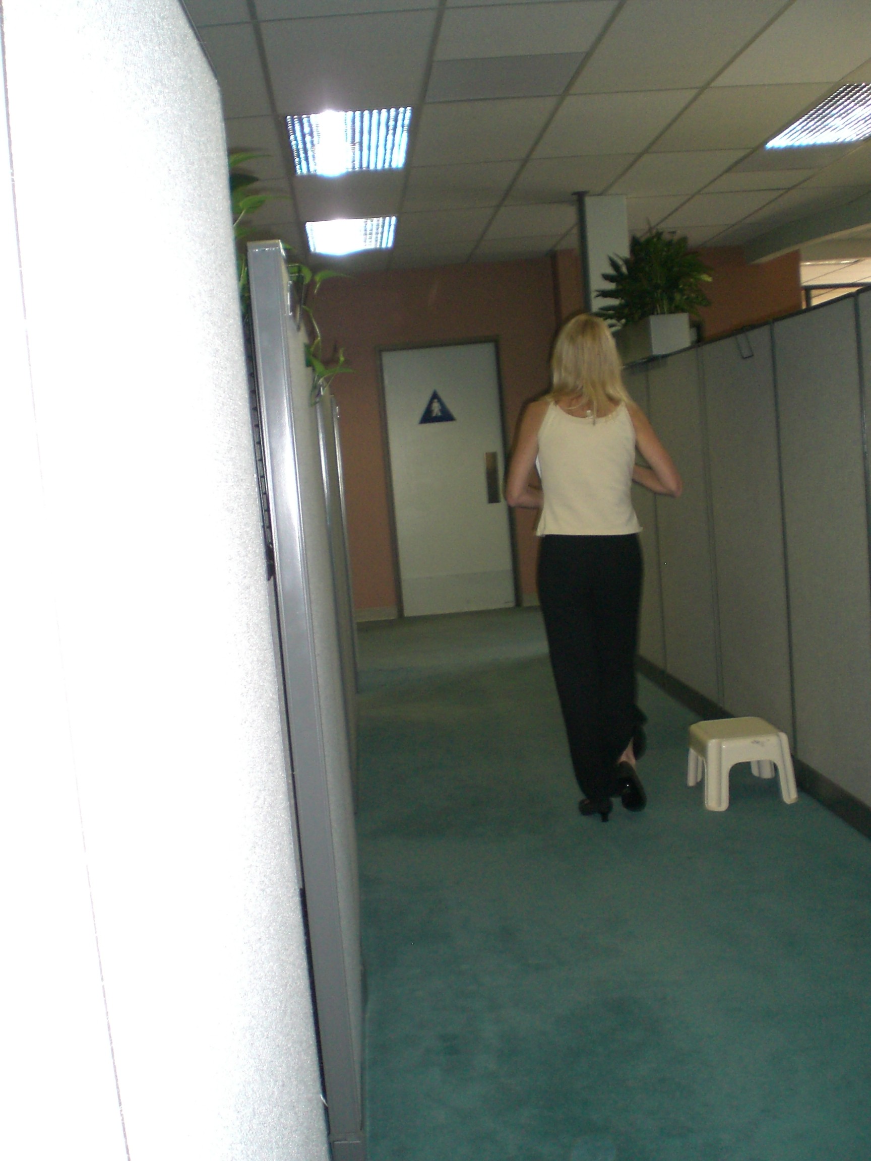 I took a picture of one of the people who work in my buildings' pants (who I dont know....they were from downstairs someplace) They were wishy, almost skirt pants. I took the pic on sly from my cubicle. I felt like a super spy.