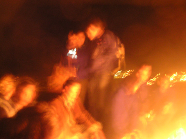 here we met orion, who gave us wood, and avidd, who was purple and also gave us wood. har har. avidd told us the best way to get to the beach was to go to geary and take a bus but had the obvious intention of intercepting us. we were about to take off when jason & co showed up and we came up with a rather prudent plan involving transfers and such. ian shows up at the bus stop for a while and does this amazing bullet dodging dance as monkey tosses those white snappy things that explode when you throw them at his feet. we are talking as the bus pulls up and apparently we weren't fast enough to react because it takes off without even coming to a stop. having already waited 20 minutes we are horrified. we keep waiting and kelly and i start trying to hitch again. and bam it works. we shamefully leave everyone behind and dive into this car. the guy is named mo and offers to take us straight to the beach. except he drops us off at lincoln not fulton and we are too gung ho to notice. so we stomp onto the beach and go from fire to fire, and some kid comes up to me and asks me if i am trying to start some shit. i excuse myself and we go to investigate if we are in the right place. we discover the error and run along the street towards fulton. i keep pulling monkey by the hand because she is about to collapse. finally we make to the fire. we meet a bunch of people and have a great time. the cops come because of the booze and tell us to break it up. some people listen, we don't. and eventually the cops get tired and take off. many good times are had. sometime after 3 i find myself twisted drunk. on the way home i apparently tell some russian proverbs and quote some highly inappropriate lyrics, all in a bad russian accent . i also allegedly fell while leaving the beach and then adamantly denied falling with my face half covered in sand. good times.