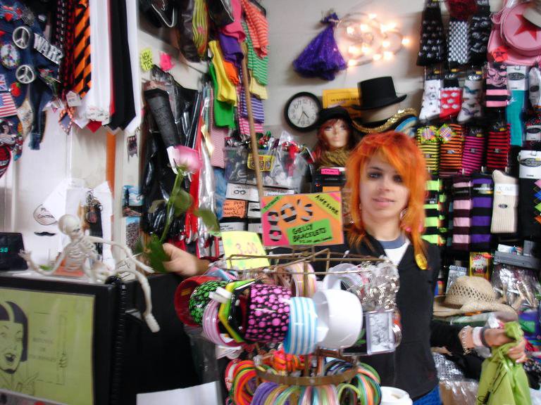 if you can't see the flower in this awesome Mission Thrift Store..look above and to the right of the skeleton on the cashregister.