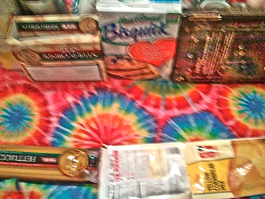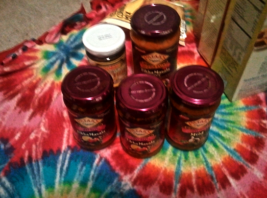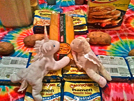 Kraft mac and cheese, princess shaped chicken noodle soup, pasta, rice, tomato paste, beans, chili, couscous, saffron (which is important!)