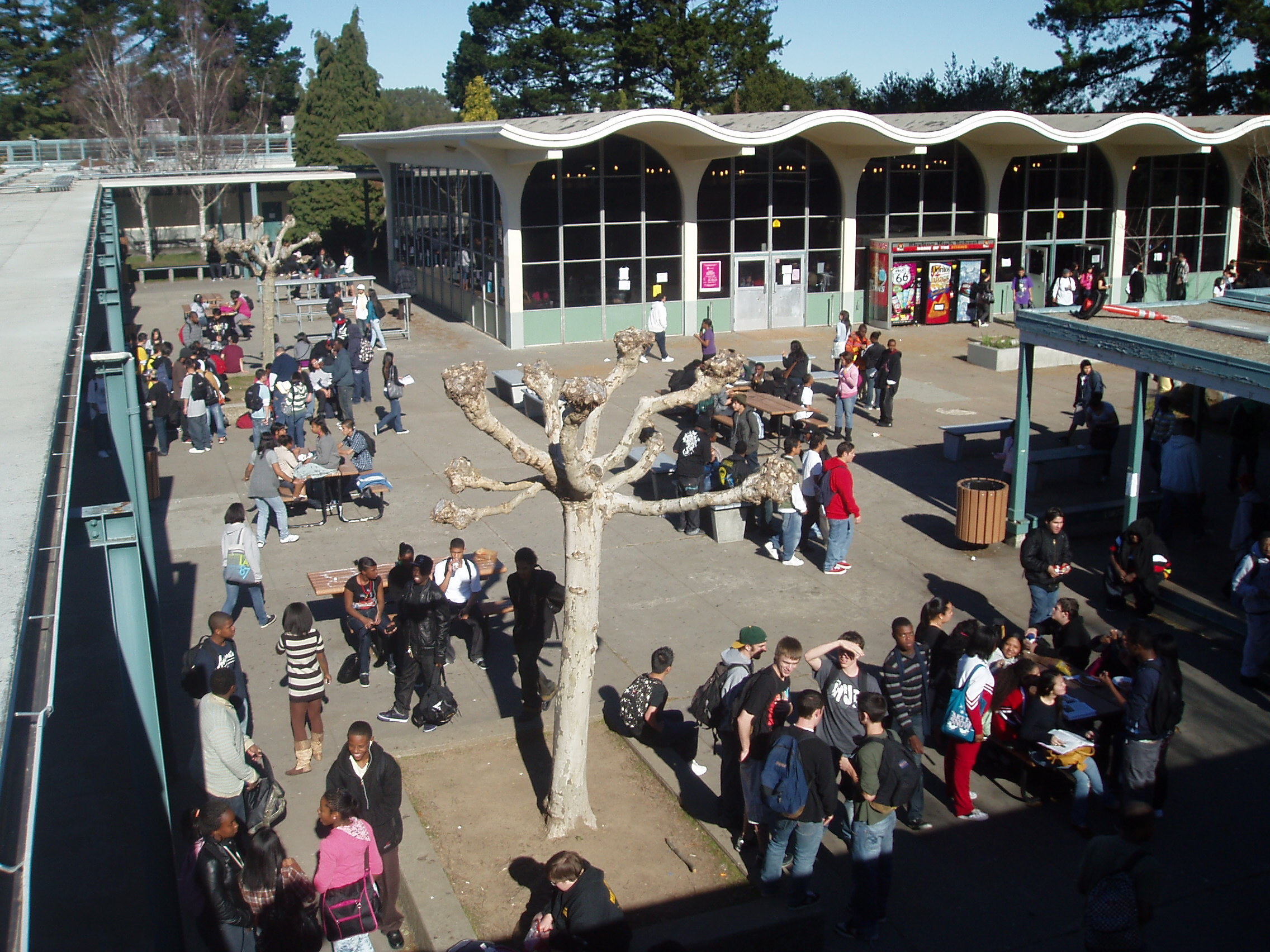 To the left side is the thing over the walkway (I think its called a veranda, so I'll just use that). I decided to do some sight seeing, so I took a picture of some students having lunch. If you just so very rarely happened to be in this picture, I'll add you as a collaborator. (That wavy building is not the auditorium, it's the cafeteria :-[)