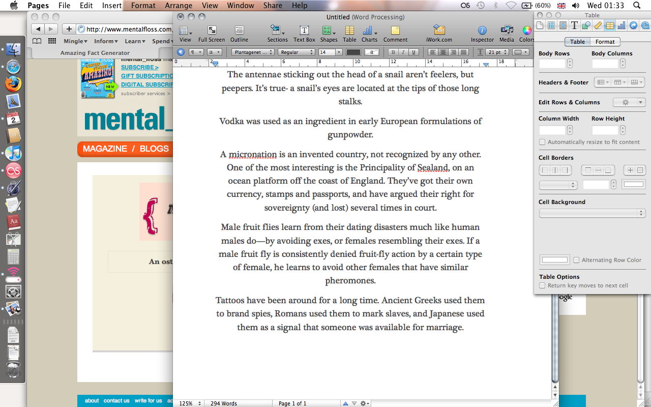 For this task, I went on Mental Floss to look at random facts, and copied a few onto a blank document to print out.