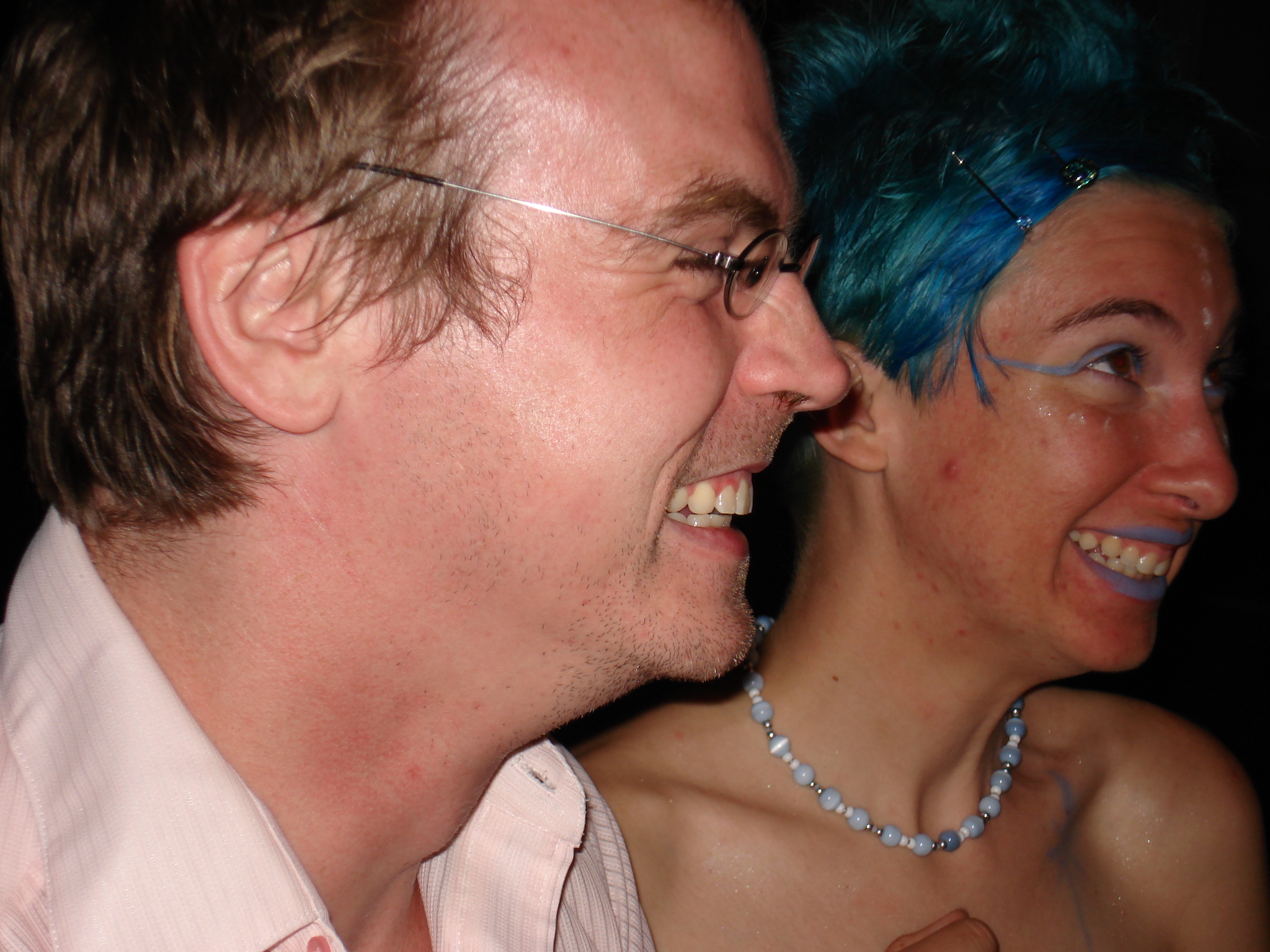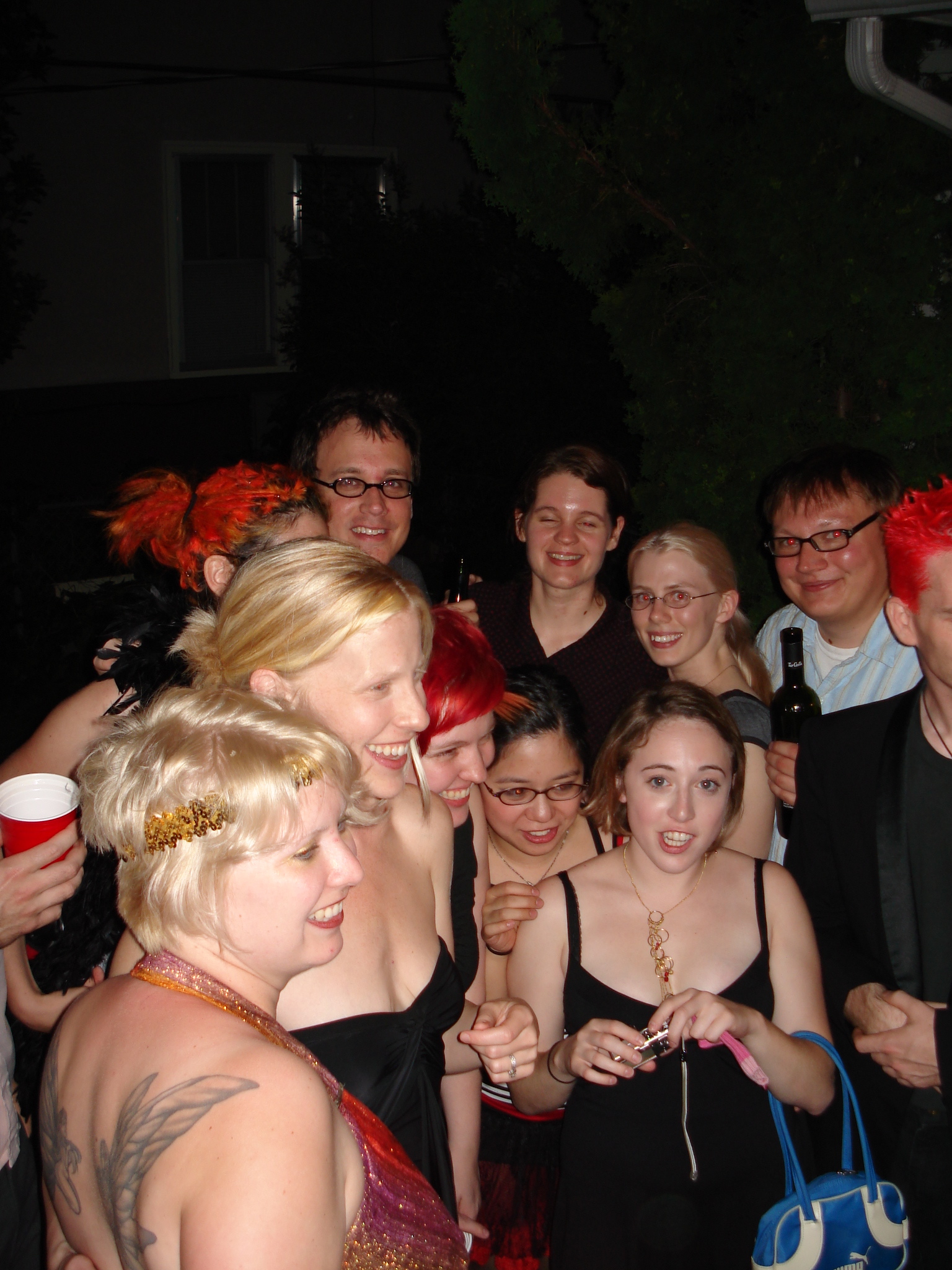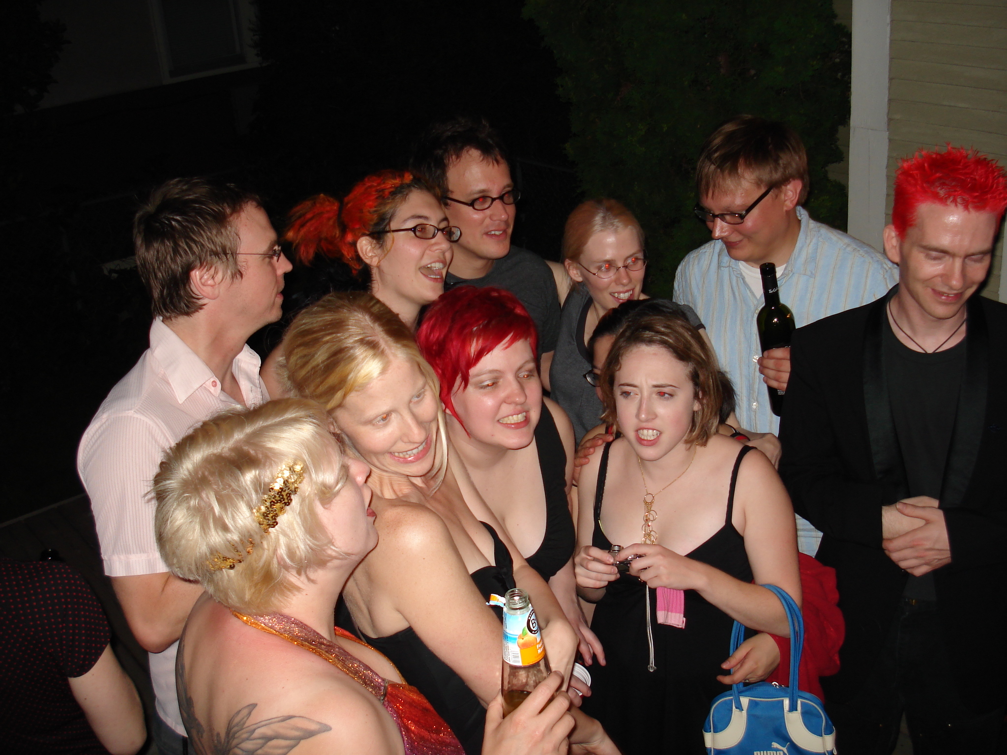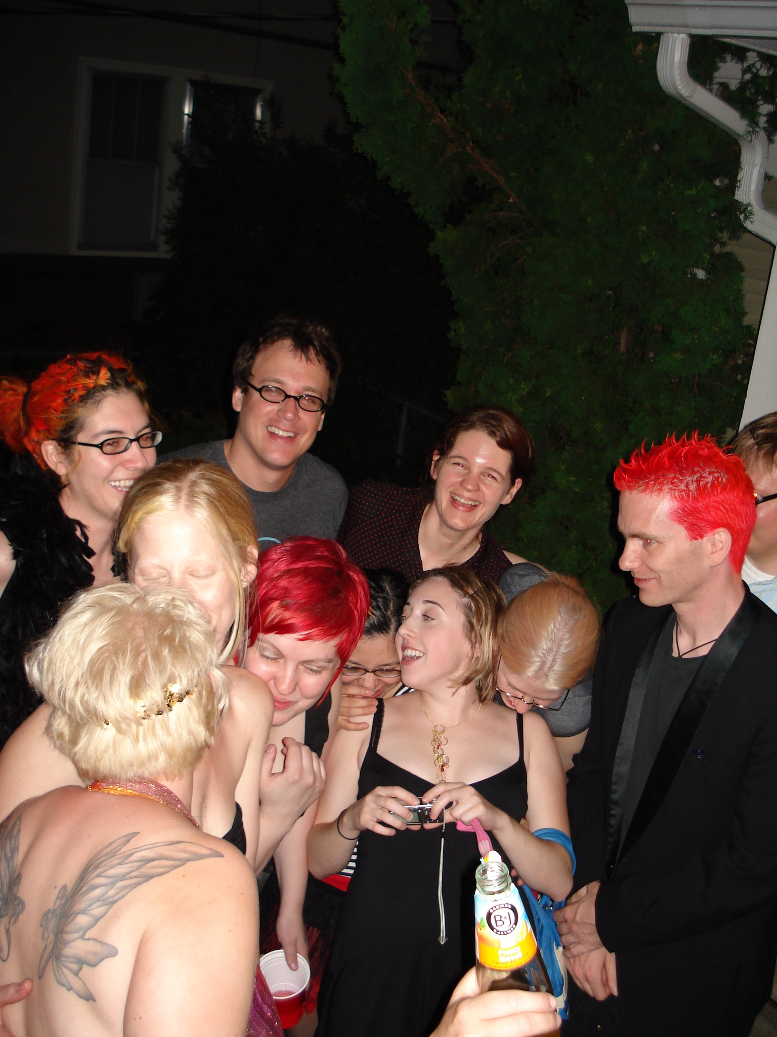 Inky: R0ckc4ndy, Copperbottom, Oliver, and I spent a bunch of time decorating Olly's house for the fĂȘte, only to be defeated by the heat, which kept the party mostly on the back porch. I'm not in many of the photos, because I decided I needed a bathroom break just before midnight, when all the kissing took part. Danger and I practiced our fake laughs, and I behaved mostly like a lady all night, which is not really something I'm known for. Kannon brought me some incredible olive/sea salt almonds for Olly's unBirthday. Who is Paranoid Android? That's an wonderful song. Also? Olly insists that Mean Jeannine was there, which leads me to believe he's become dissociative.