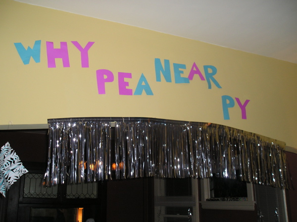 The other fun thing I did was bring a birthday present to the wrong person (InkTea instead of Oliver), dressed as an awful belated white-elephant Christmas gift. ("Um, thanks for the.. um, nuts. That's great. yeah, we didn't get enough of those.")