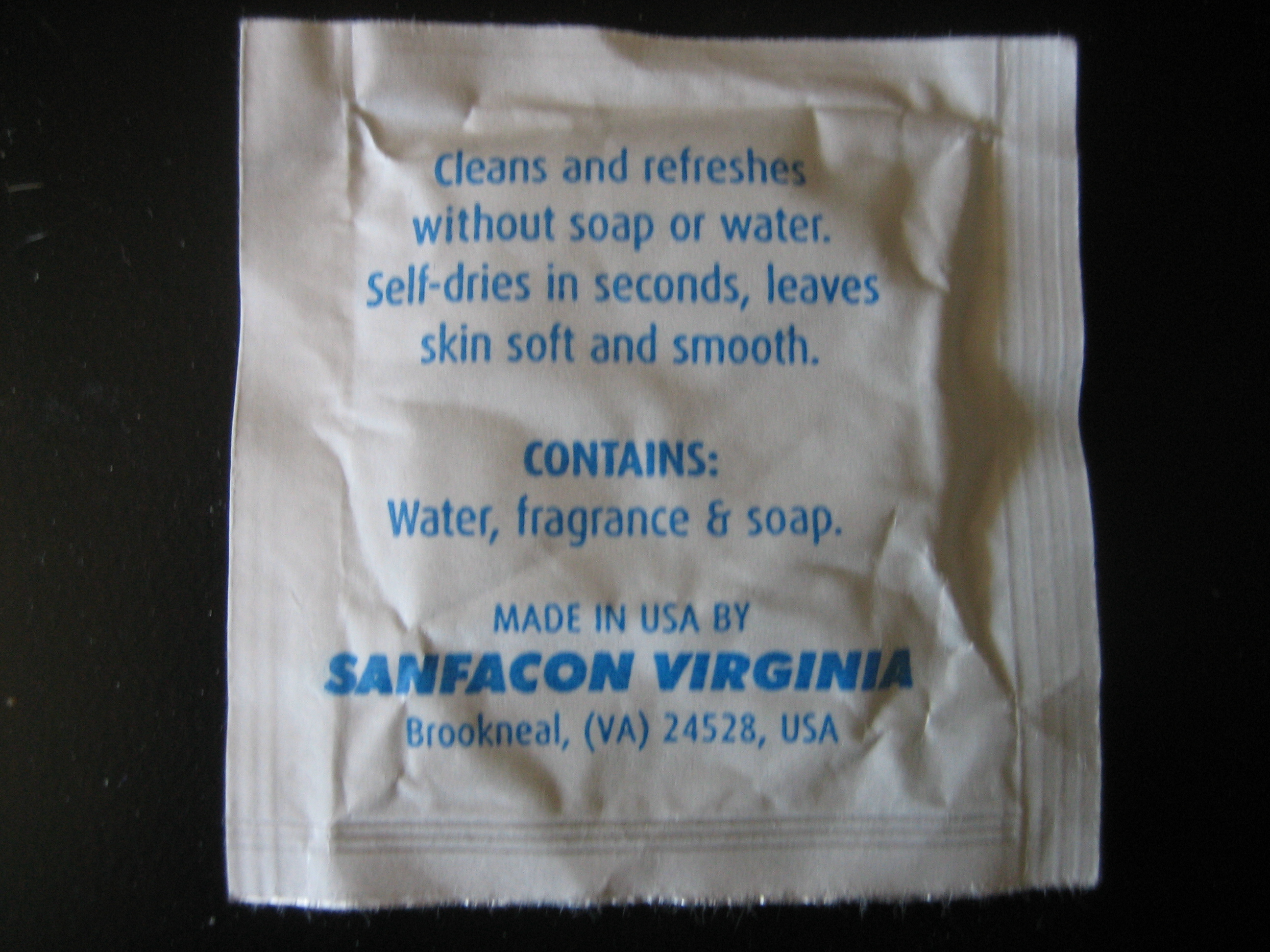 Also, this moist towelette seems to belong to a fellow named Winner.
