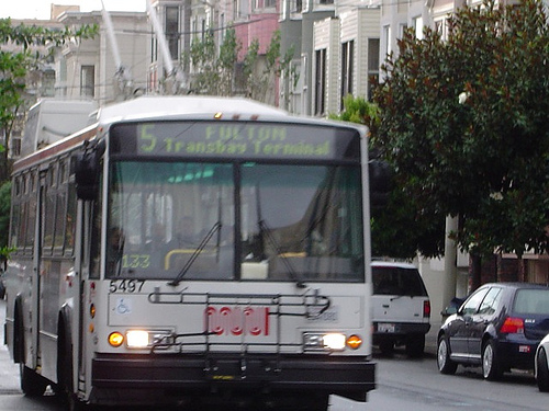 Oh #5 bus, how I love you. Every morning you open your doors wide and allow me to enter your warm, and occasionally smelly interior. I glide past all the other lovers you have and find that one special spot, the one you love for me to sit in. I close my eyes and melt into your shuddering stops and starts as we travel down McAllister St. You love it when I pull on your cable and smile at your exquisite bell rings. Oh, I will exit through the rear door, you don't have to ask me twice baby.