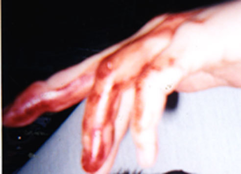 after they set my finger my artery opened again and i was without scabs so the blood came and it came freely.