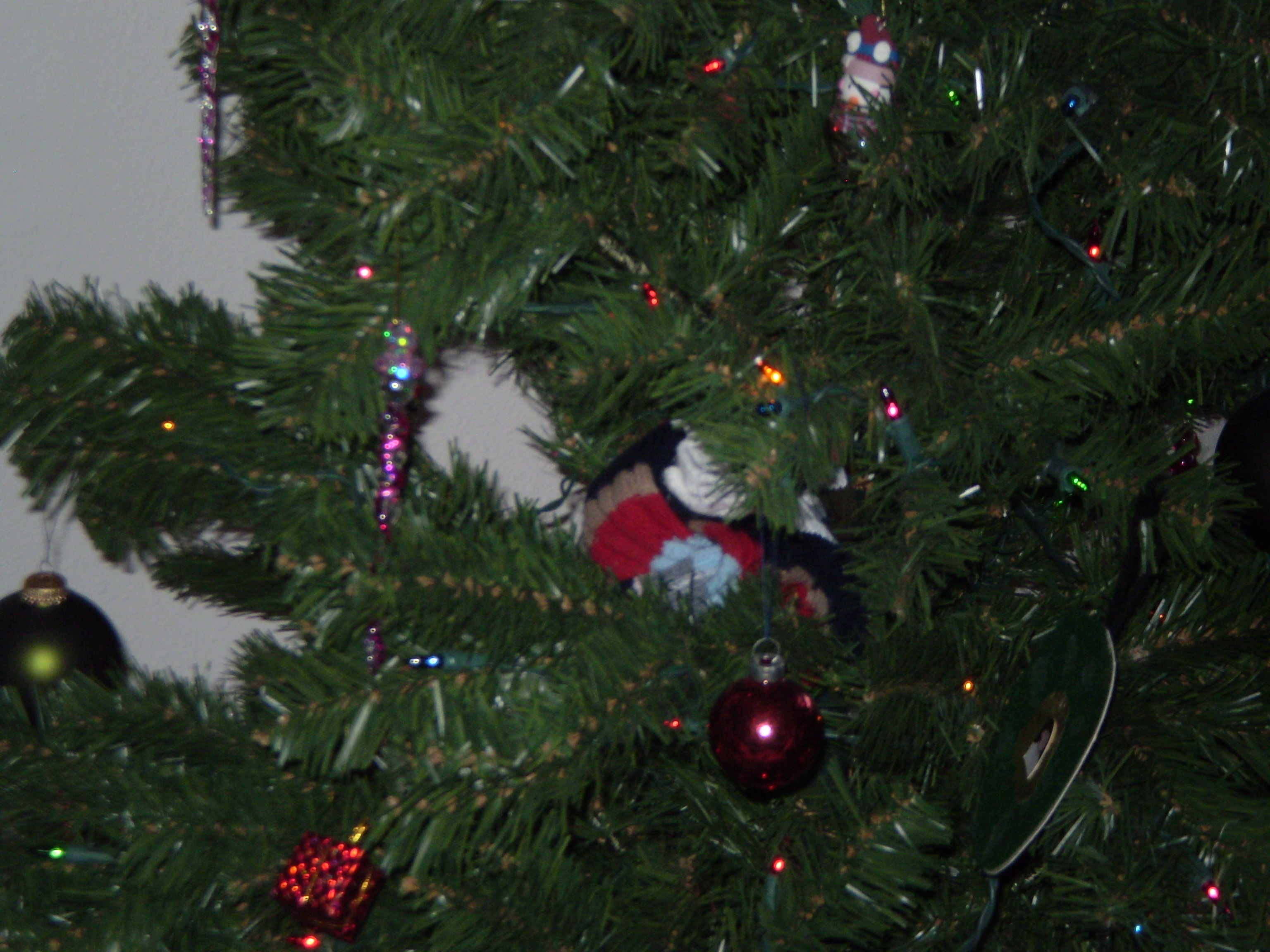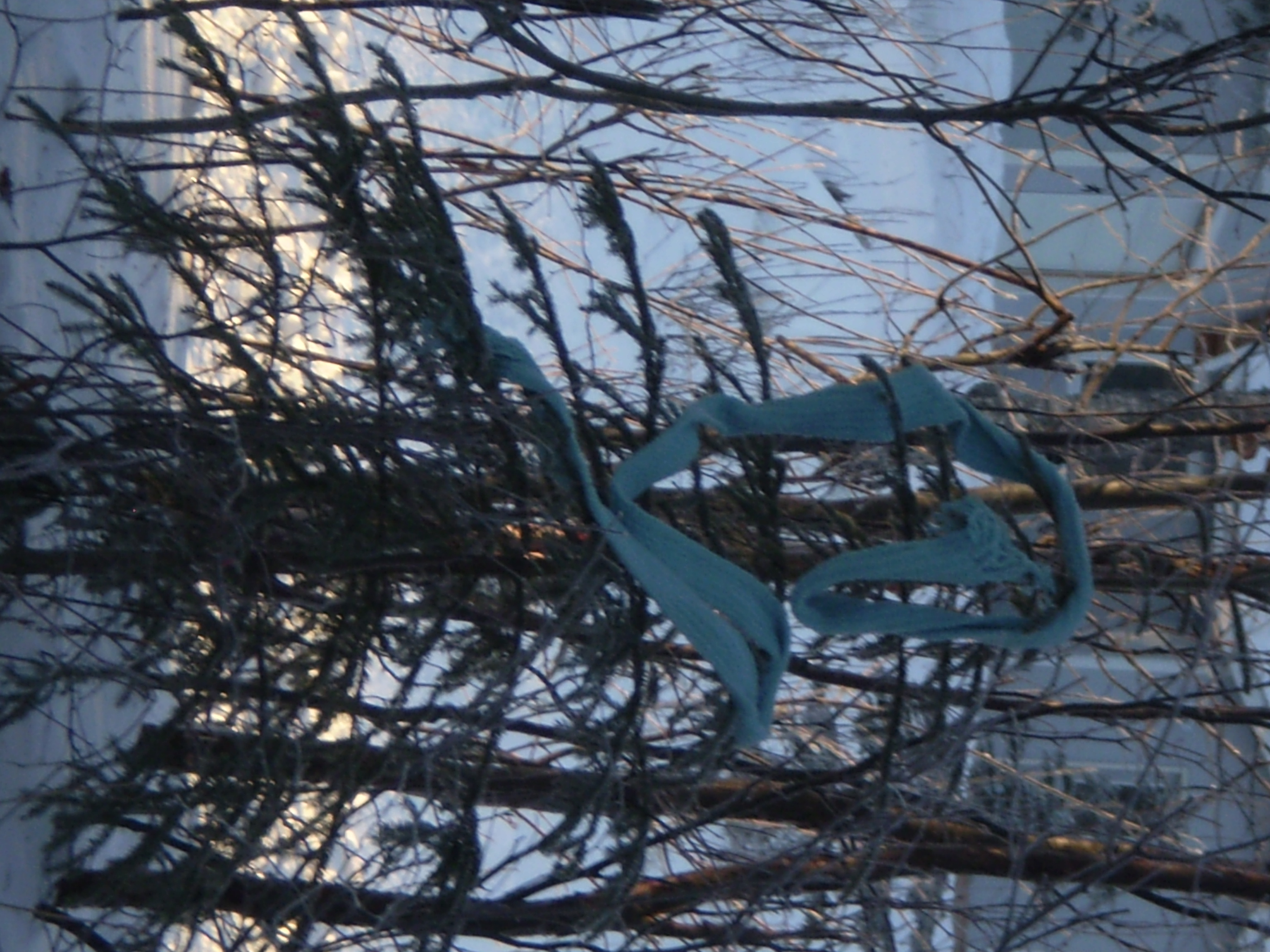 So I live in Alaska, which is definitely not short on trees. However, it was -20 degrees outside and the snow was knee deep. We decided that scarves were appropriate for the task since it is so cold. Instead of hiding the scarves we ended up dressing up the trees. When we came back inside I noticed that I had forgotten one scarf. We didn't want to go back outside, so we hid it in the Christmas tree!!!