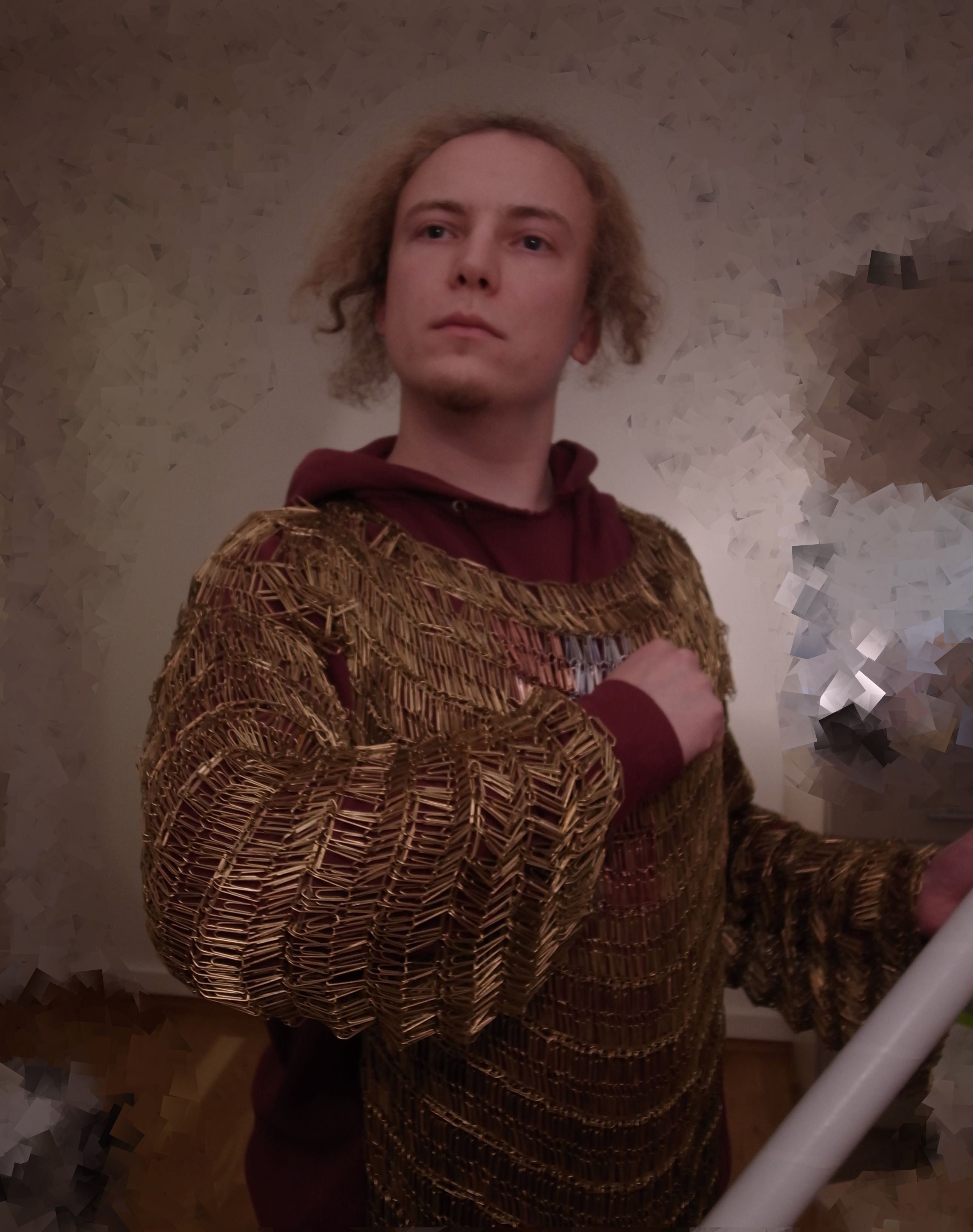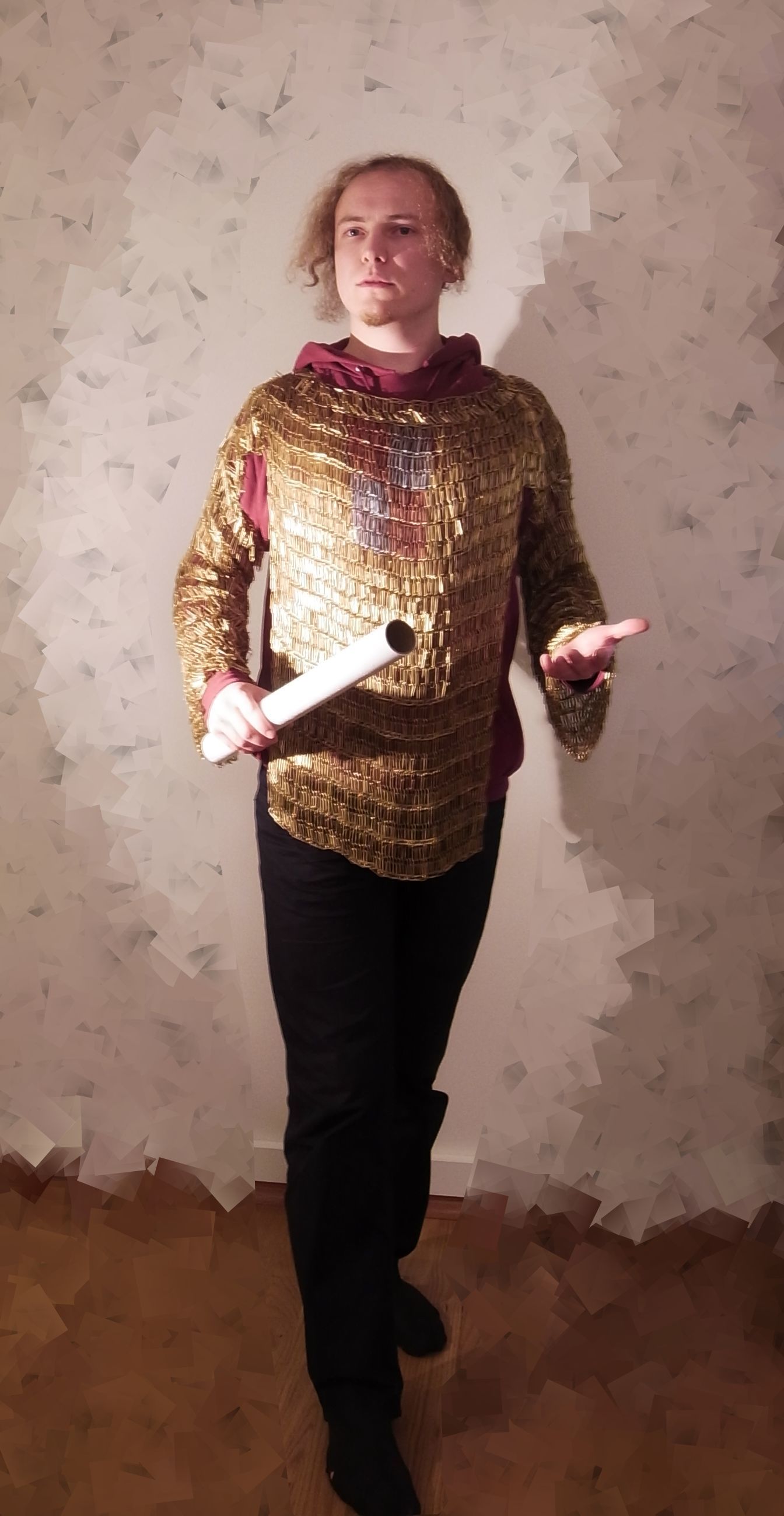 I love it. Chainmail is one of my hobbies, though I've never done anything larger than a necklace, and never out of paperclips. This is fantastic.