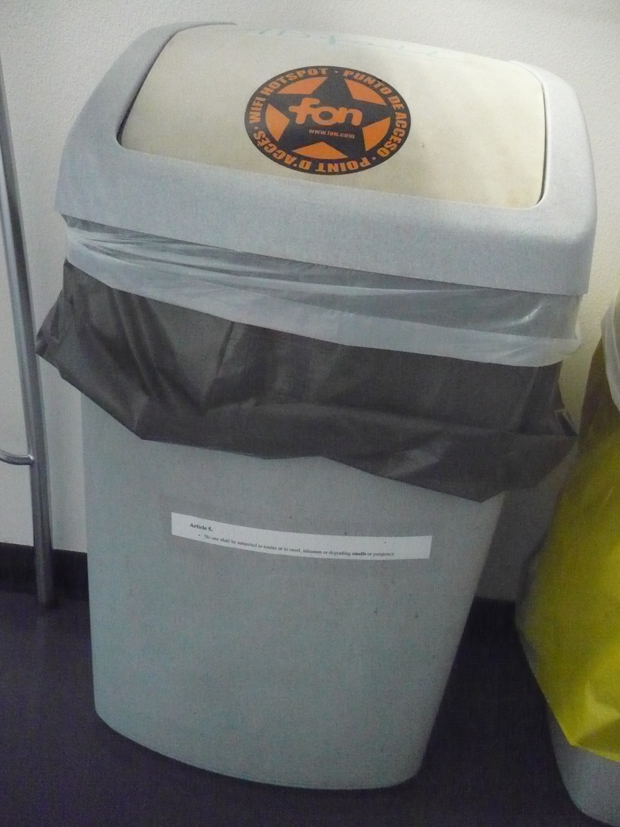 No one shall be subjected to toxins or to cruel, inhuman or degrading smells or pungency. [on the garbage bin]