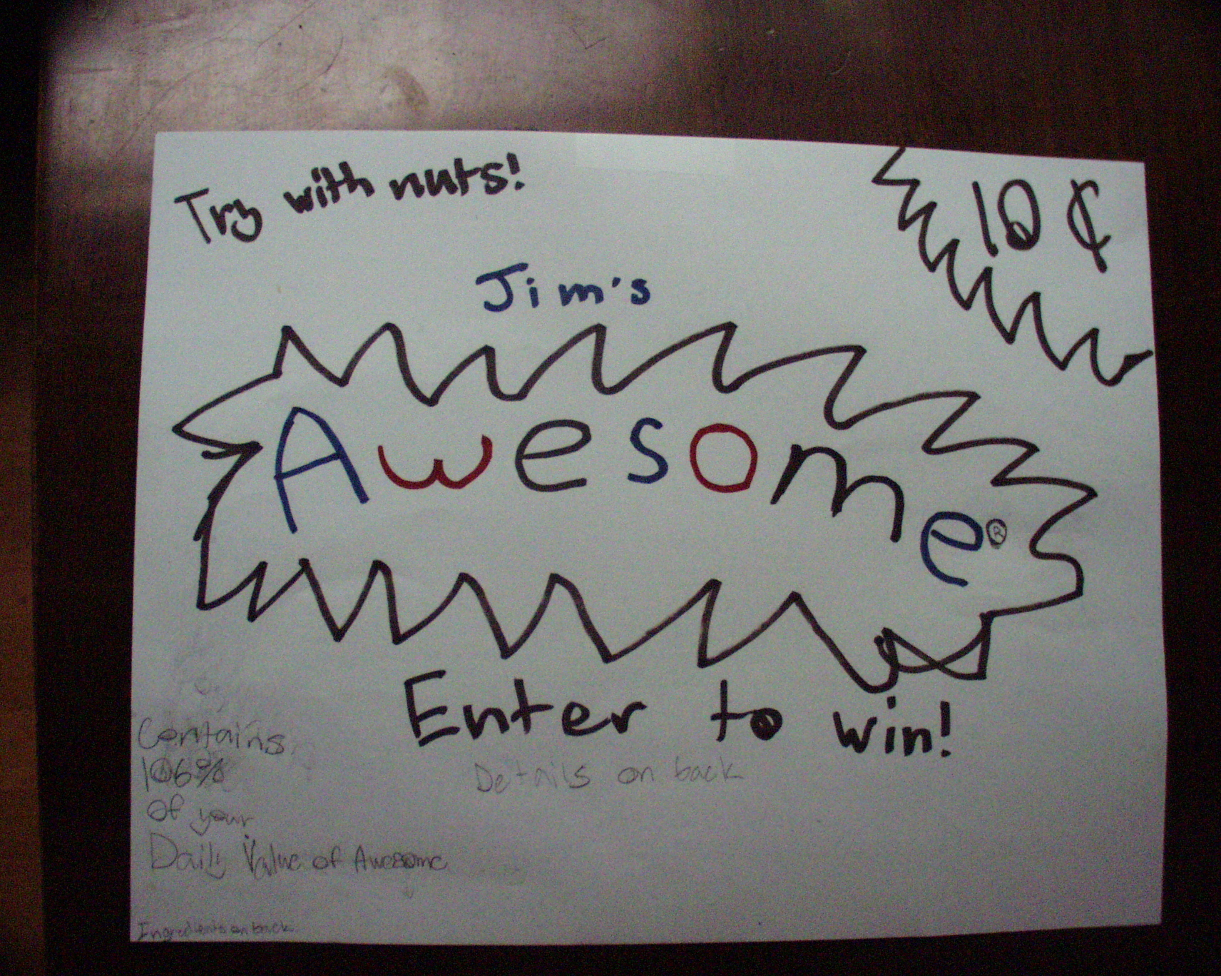 No real story behind this... I was a little worried the clerk would catch me... and I didn't find out if it was sold or found... anyway, the ingredients are hard to read. They say: Contains the following: 60% Awesome, 14% SF0, 10% Epic, 10% Cool, 5% Leet, 1% Sugar.
