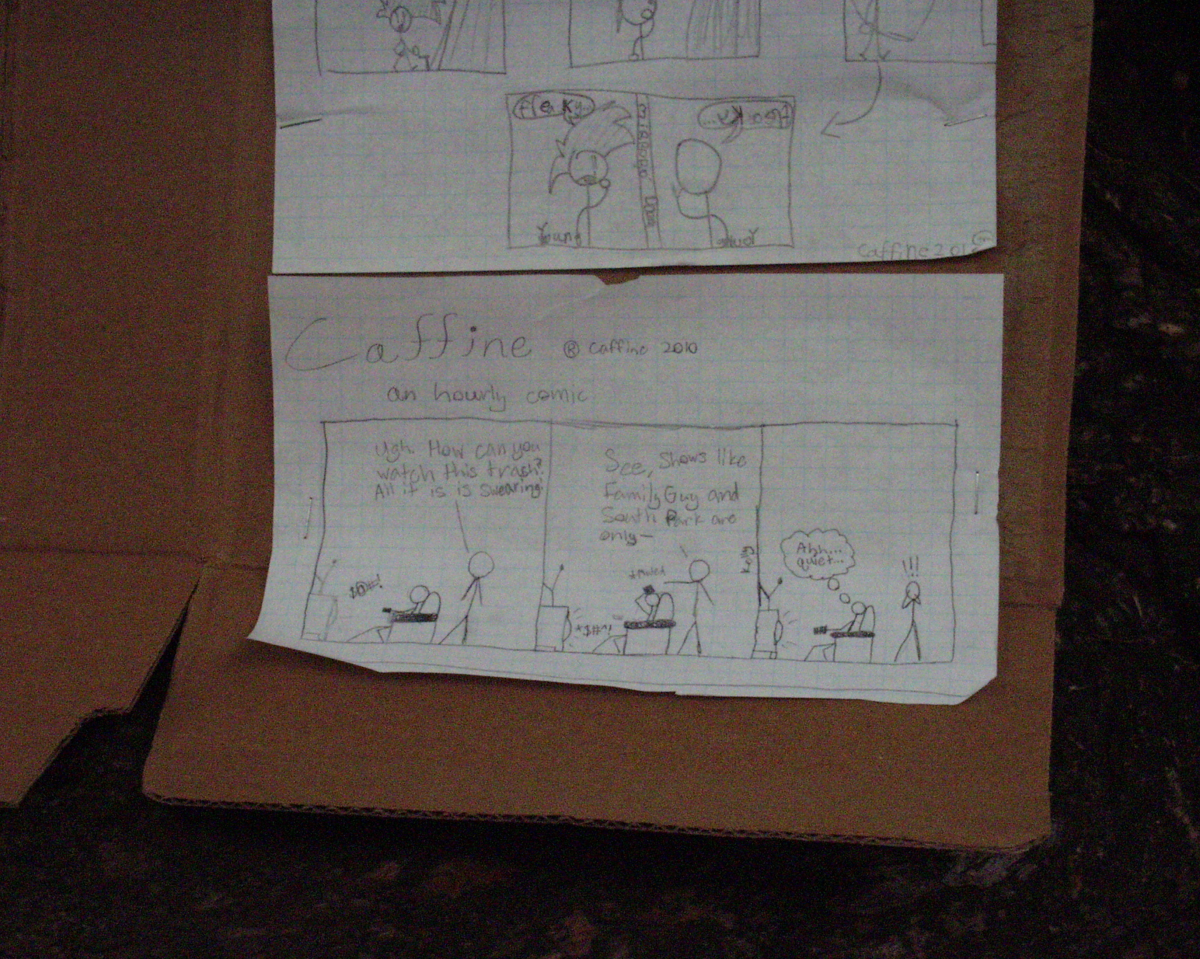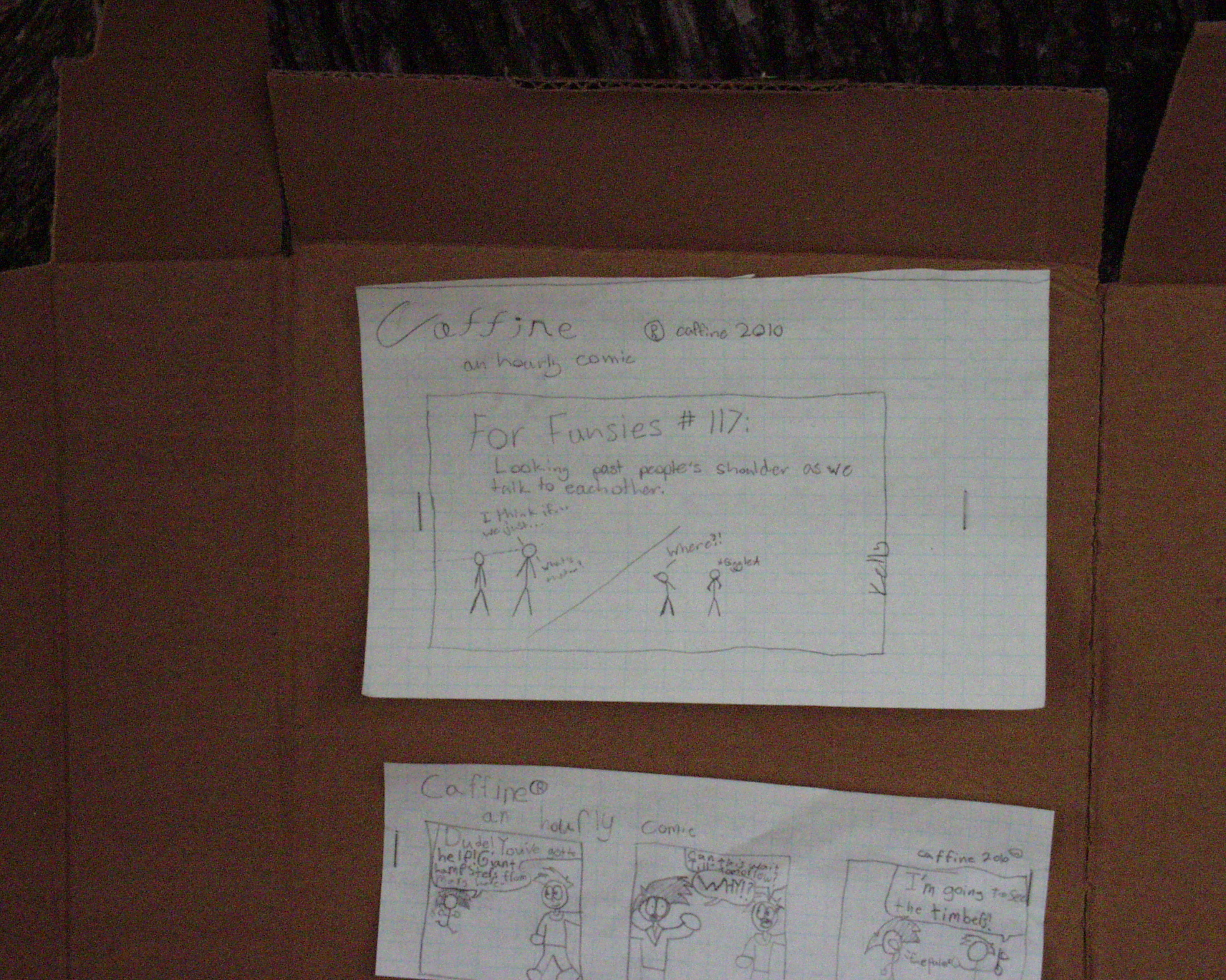 This is the second official task completed by my friend Death Cube, and both of ours first collaboration. Fun stuff. We worked on these comics for two hours last night, and hung out for 6+ hours waiting for the hour to come. We saw two people looking at our comics, but I'm sure there was more.