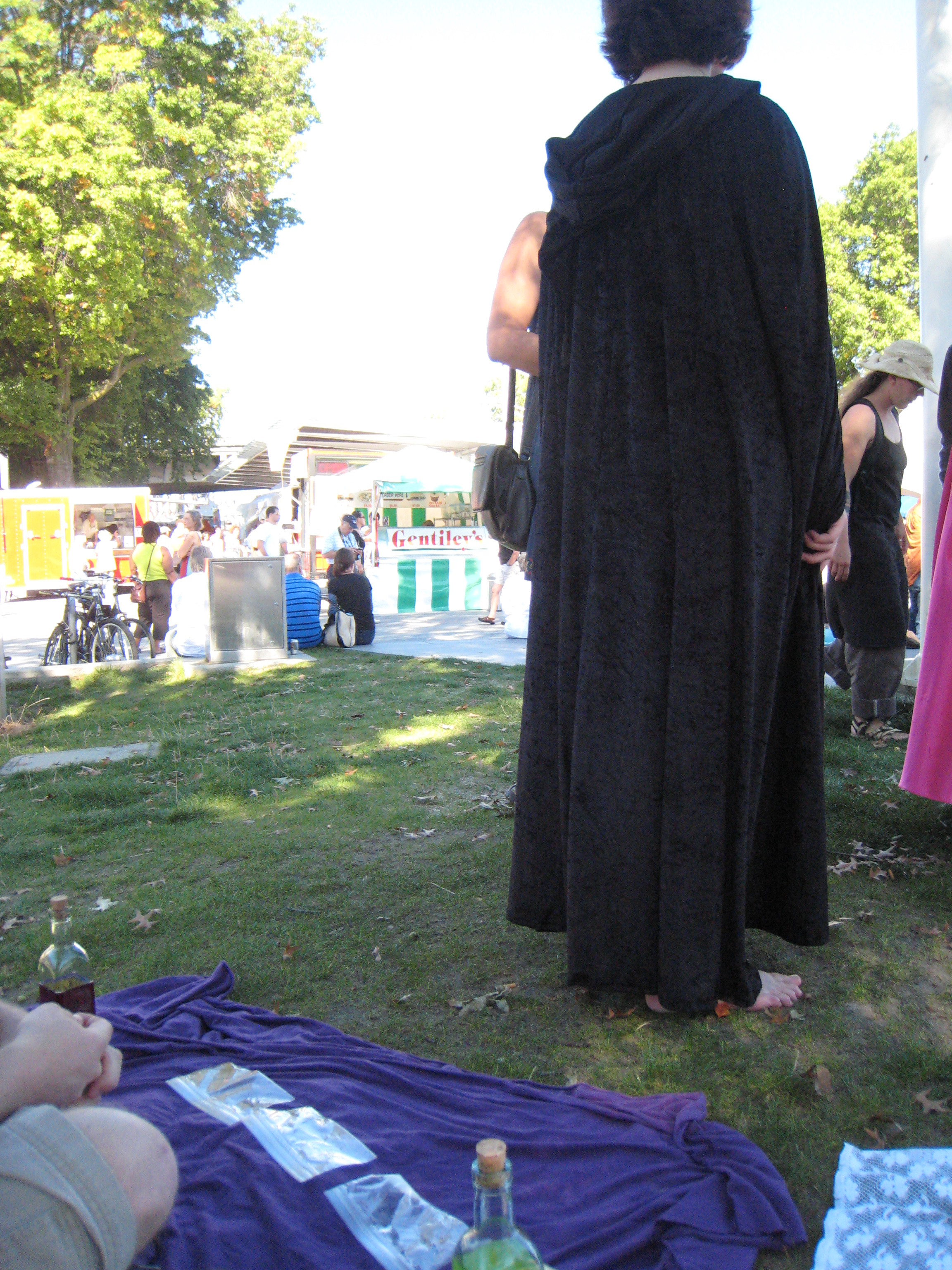 Pinkleton: I already talked about what I was selling in my other praxis (here: http://sf0.org/pinkleton/The-Treasure-Hunters/ ). I went with grey floral pants, a red flowery shirt over a white t-shirt, and a small top hat. It was kind of nice, though I wish I was more open and less fearful of talking to strangers. We got a lot of strange looks. The best part was probably when A M gave a boy some snake skin in a bottle, and he thought it was the coolest thing ever.