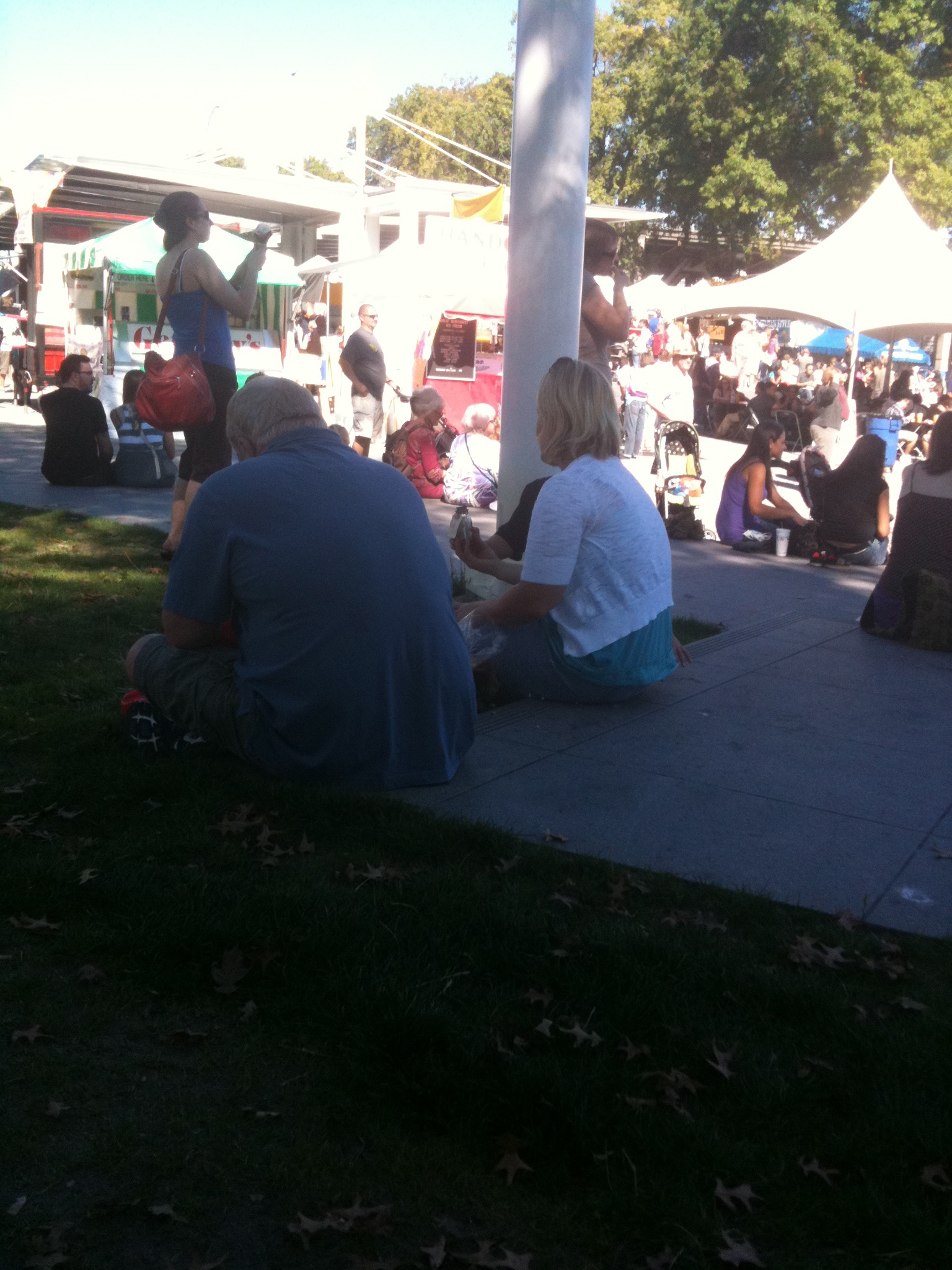 AM: I showed up at the Skidmore Fountain, mid-Saturday Market festivities, before anybody else. I settled in to watch the hoopers, balloon men, and hackeysackers.
