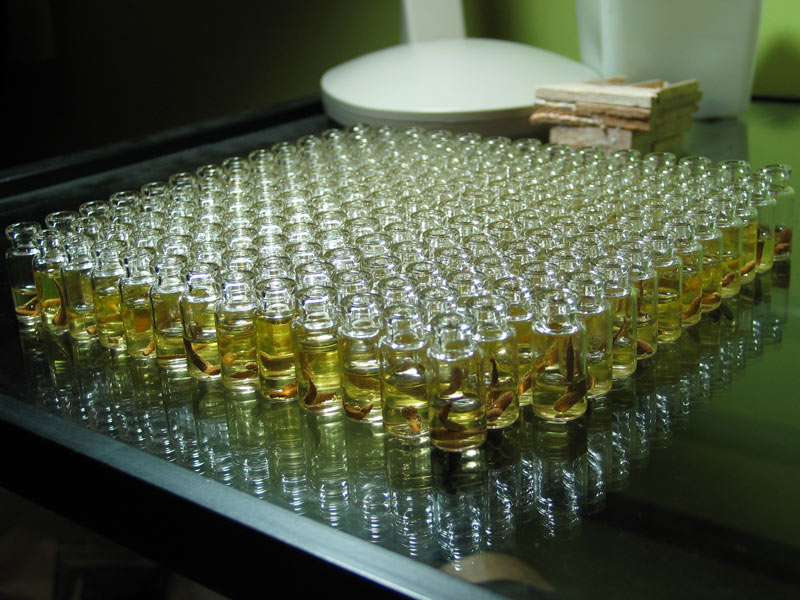 actually she did a lot of pooping. i envisioned her shit as a completion of a task and suggested the idea to her. and it took a long time cause she wont poop on command or even for payment or even in any particular place with any kind of regularity. its not like her irregularity of place to poo gets messy, however. Basically shes like a cat, not just with her cleanliness with being housebroken and shitting but, also in the sense that if you want something out of her well then thats just what she doesnt wanna do suddenly. Insteada bribing her to shit in the vials or making it feel like i was giving her a payment to shit in the vials, i just left them on the table. She knew i had a deadline for this particular task. i started just rolling her miniature sized cigarettes. It was a sort of unspoken thing. She came around. Or maybe its just that tobacco loosens up the bowels. I dunno. Shes gone now, i spose i missed my chance to ask. I hope she flits on back sometime.