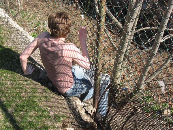 We decided to call it a day, and headed back out. Climbing up under the fence was more difficult than climbing down, but we all managed.