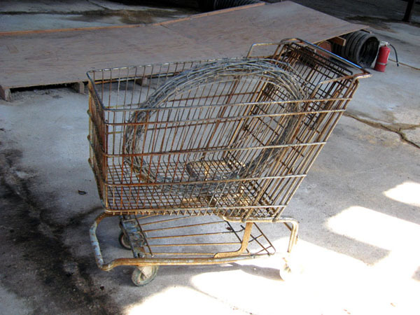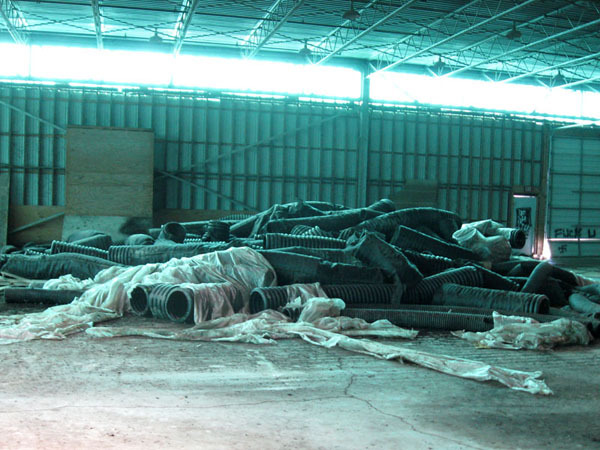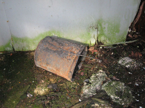 There was a bunch of junk inside. In the background of this picture, you can see a skateboard ramp.