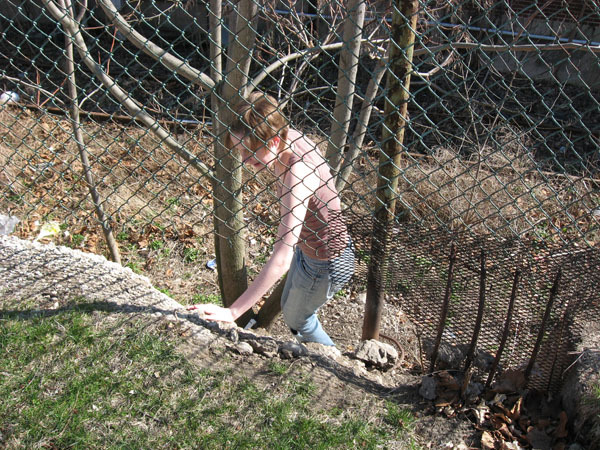 We had to climb under a fence to get inside. I scratched the hell out of my back.