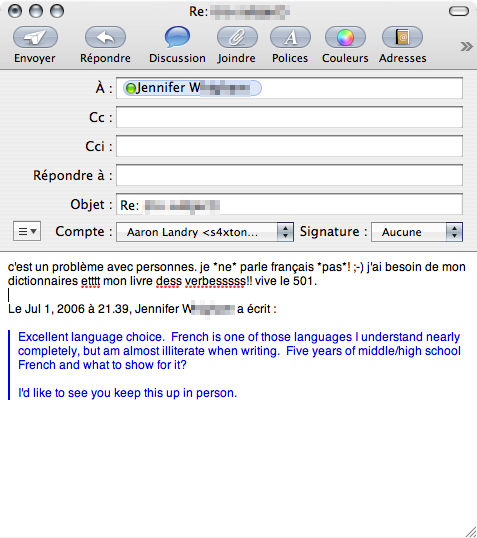 Many times when writing email I end up looking at it... then realizing, "it's not worth it" to send this off in French and I close the window and get taunted by this: