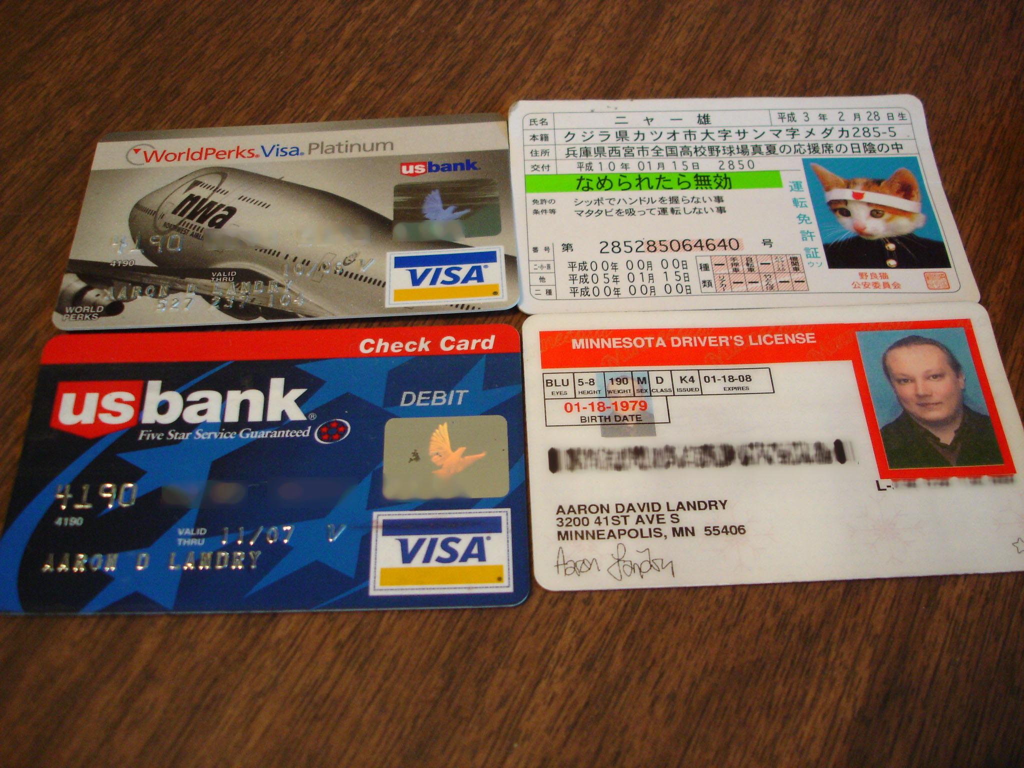 The four first items you see when you open my wallet are my credit card, my bank card, my "College ID" and my drivers license. I think it gives off the impression that I travel. The "College ID" is actually a Namenneko driving permit (google it if you're curious) but to most it looks simply like a Japanese ID with a cat on it. I use it as a college ID when one is asked for for discounts and such. I don't let them turn me down just because they can't read it. A casual person sifting through my wallet probably won't know what to think.