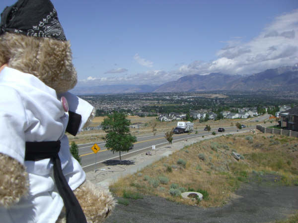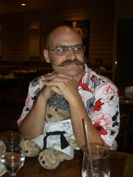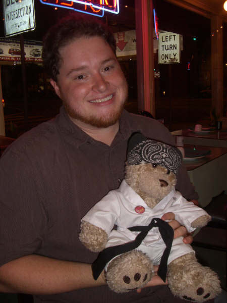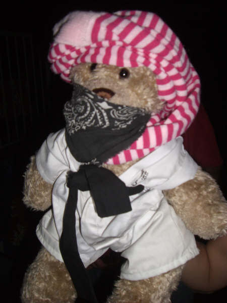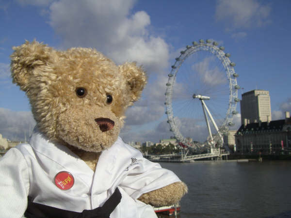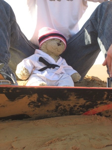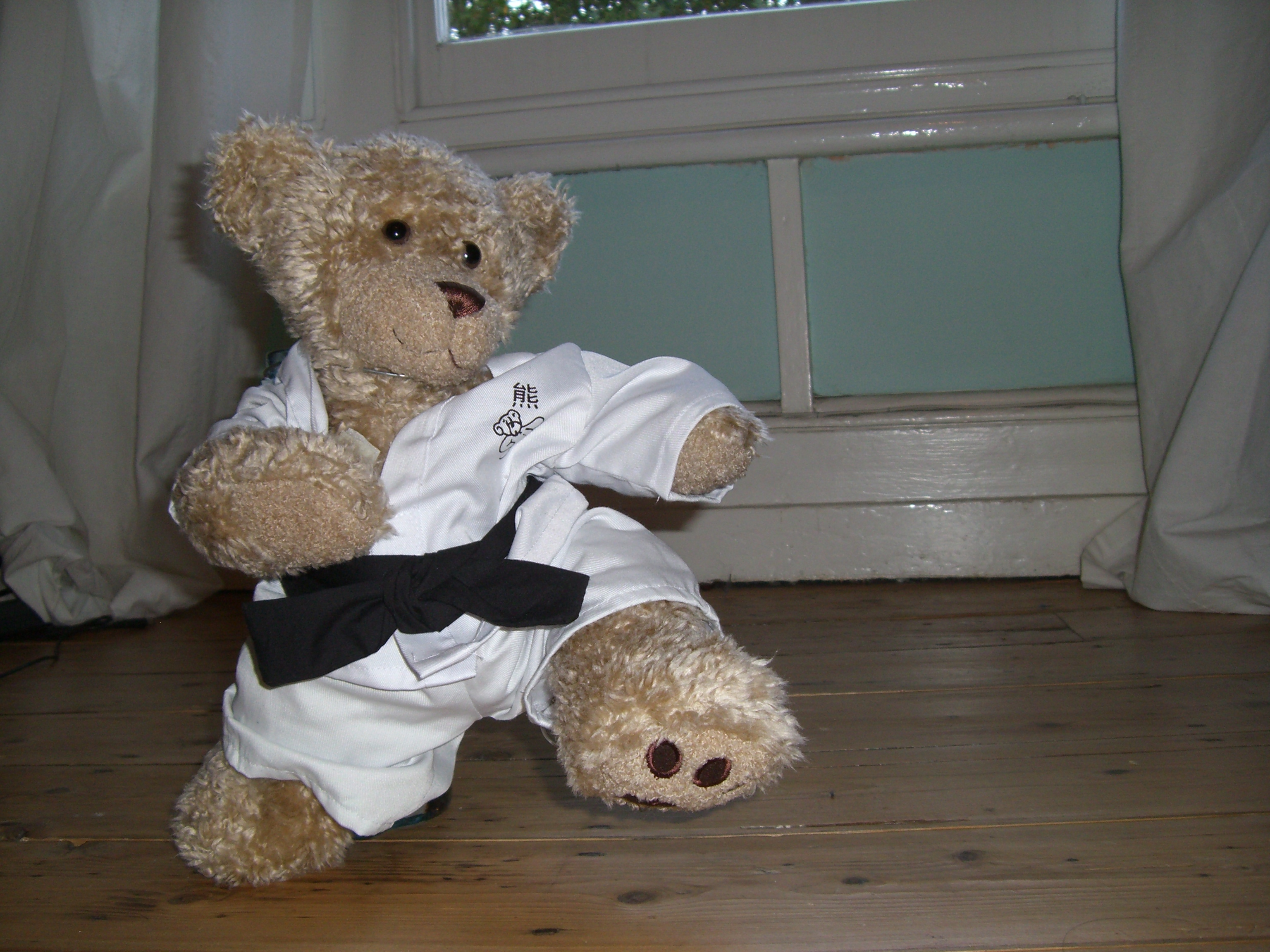 I'm a very active bear. I am a shodan black belt at taekwondo. This is me in the dojo, taken by my brother Cornthwaite.