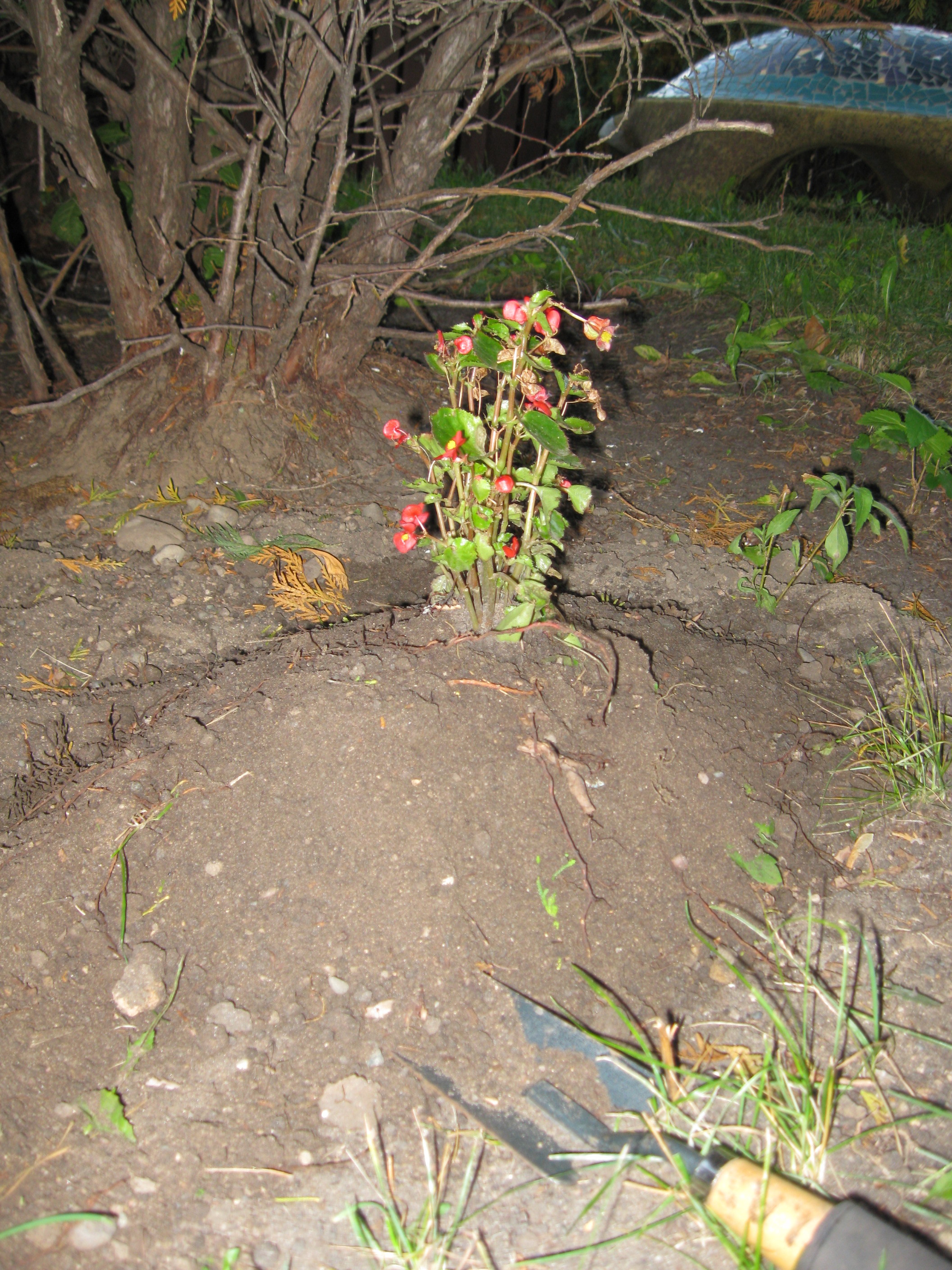 I didn't think the flower belonged on a heap, so I put the earth back, and the flower as well, that it may light up another's day. If you look you can see the square around it where the dent of the hole was.