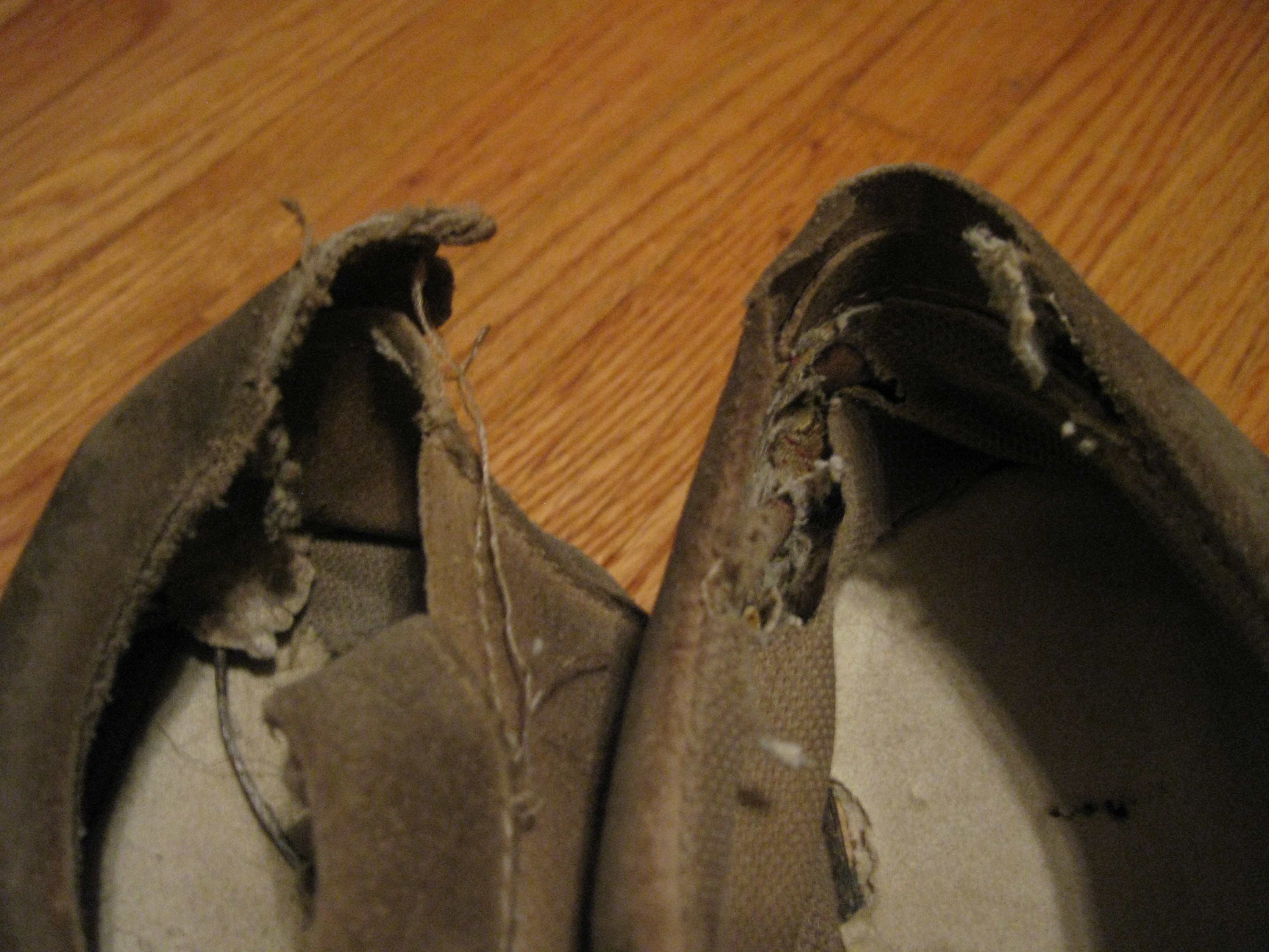 These shoes also suffered through a puppy teething stage, and the heels took quite a beating.
