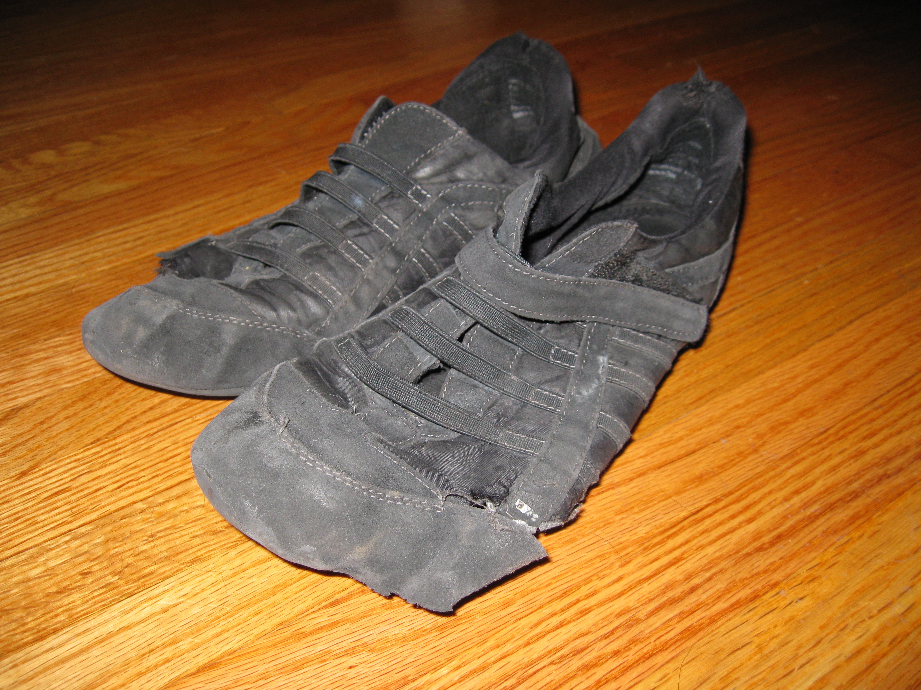 I don't know what it is, but I have a very hard time letting go of my old shoes. I suppose it's all of the miles i've walked in them, all of the places we've seen together. It's odd, because once my shoes get so beat up that I can see my socks through the holes, I always go out, buy new shoes, and just store my ratty old shoes in the back of my closet.