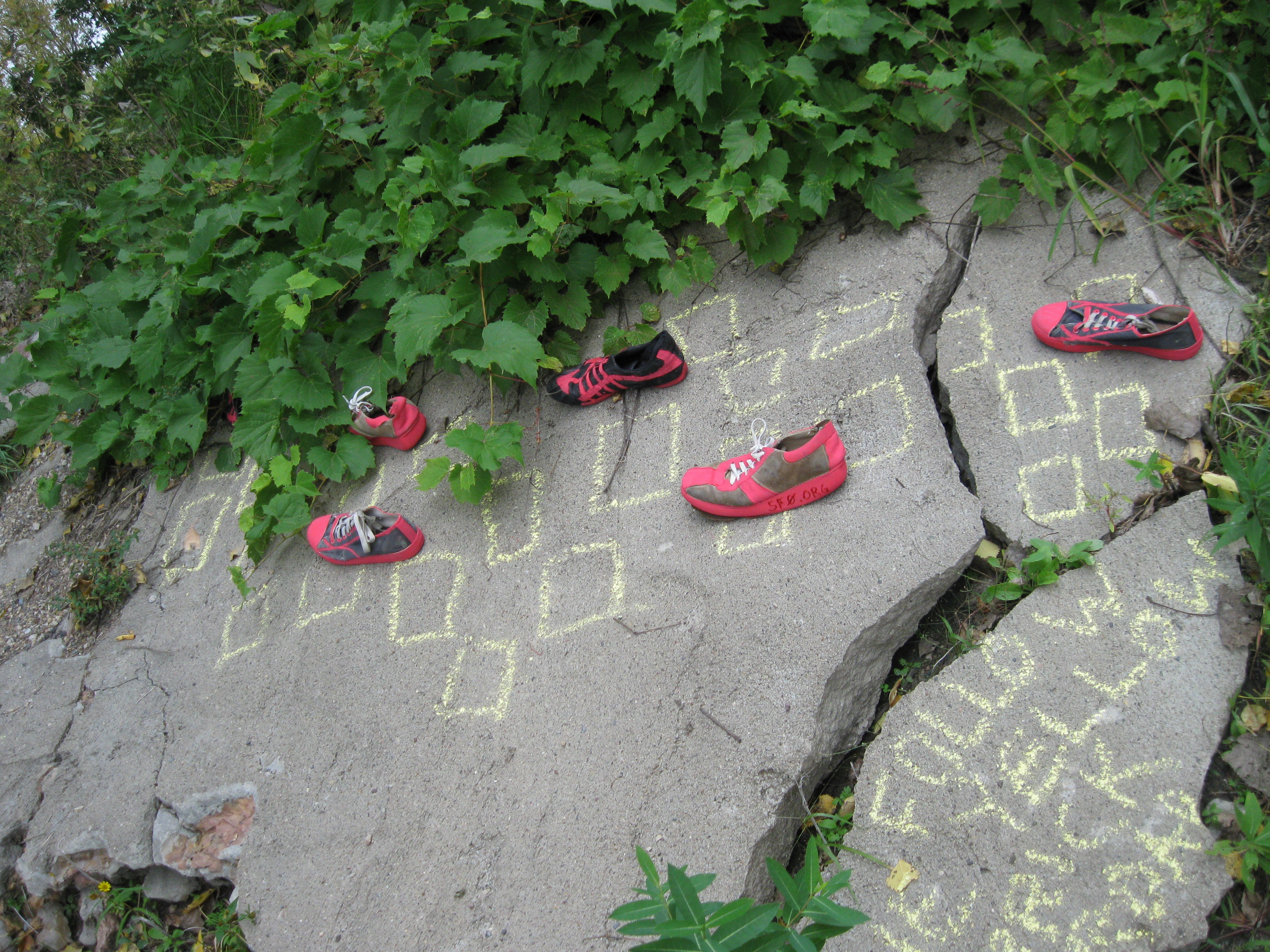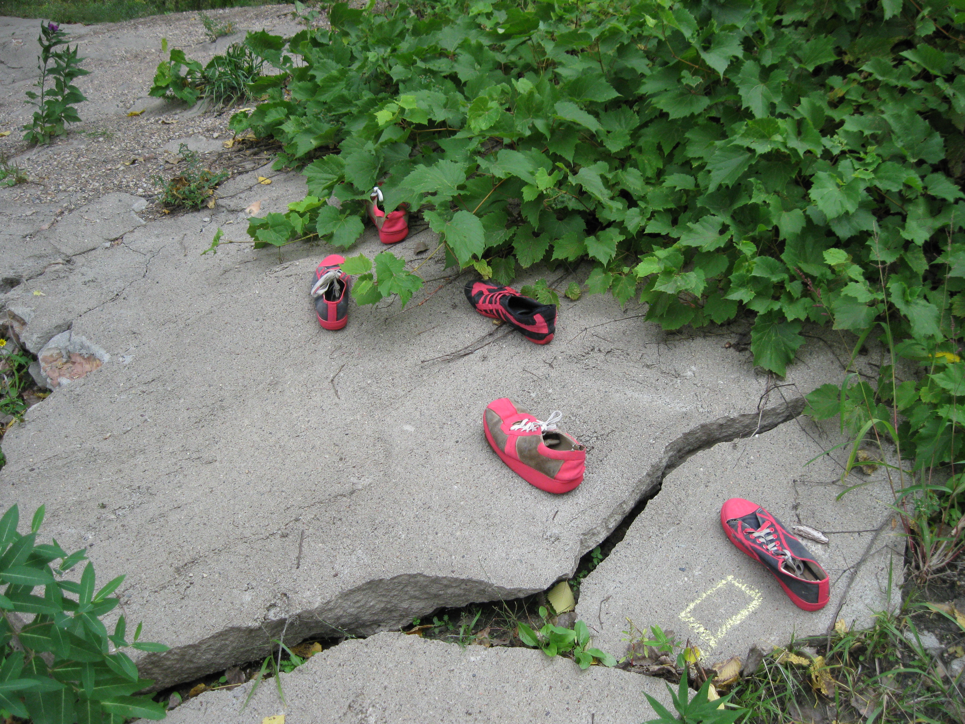 So now anyone who happens to walk along this trail will be able to enjoy and be mystified by the trail of trotting shoes.