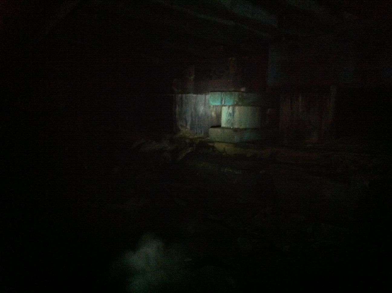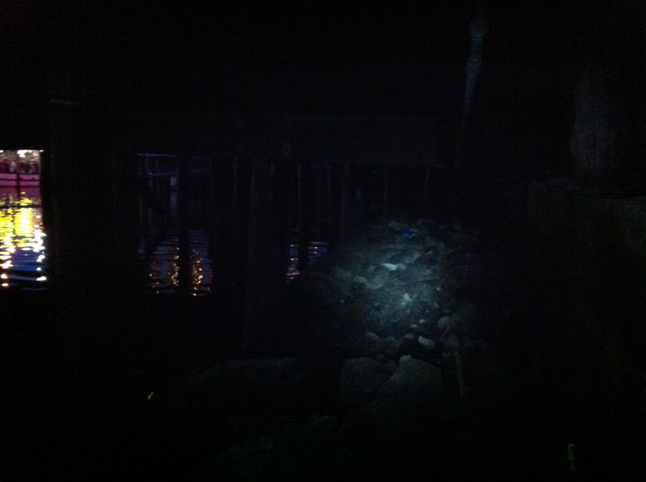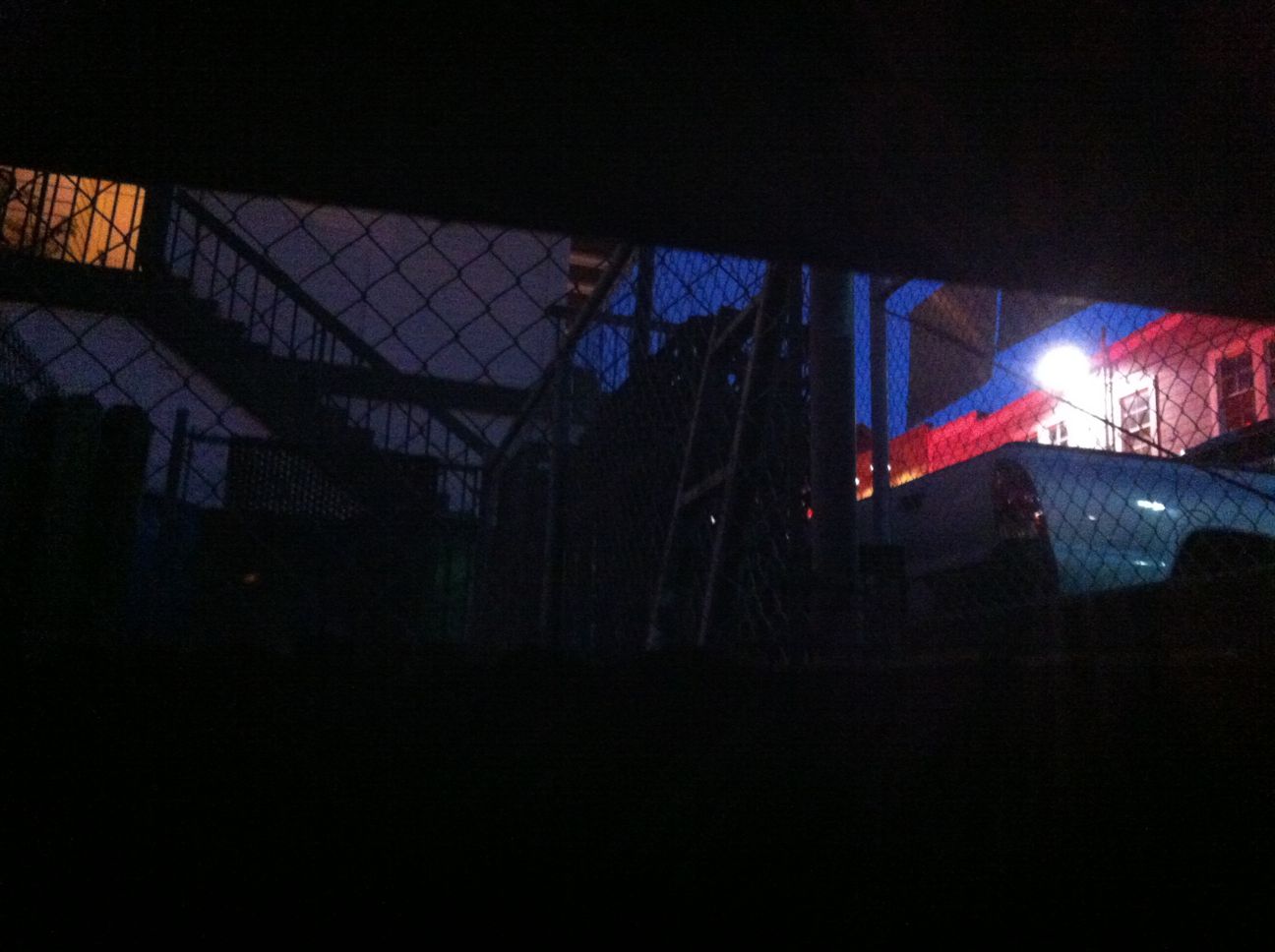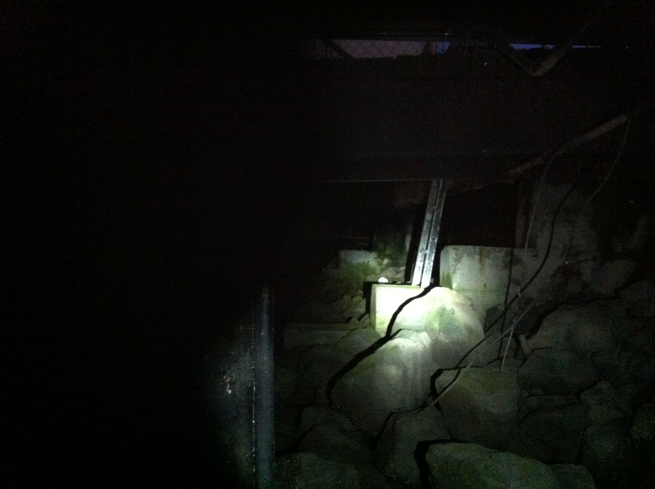I initially planned to just poke around a bit, take some pictures, and head back the way I came, but my flashlight kept pointing out more places I could get to, so I kept pressing ahead. Eventually I came out on the other side with a vaguely convenient ladder. The ladder was only vaguely convenient because not one but two chain-link fences were between it and the public street. As a result, I have no photos of my egress, although judging by the flash that went off as I was clambering over the second fence, a security camera somewhere probably does.