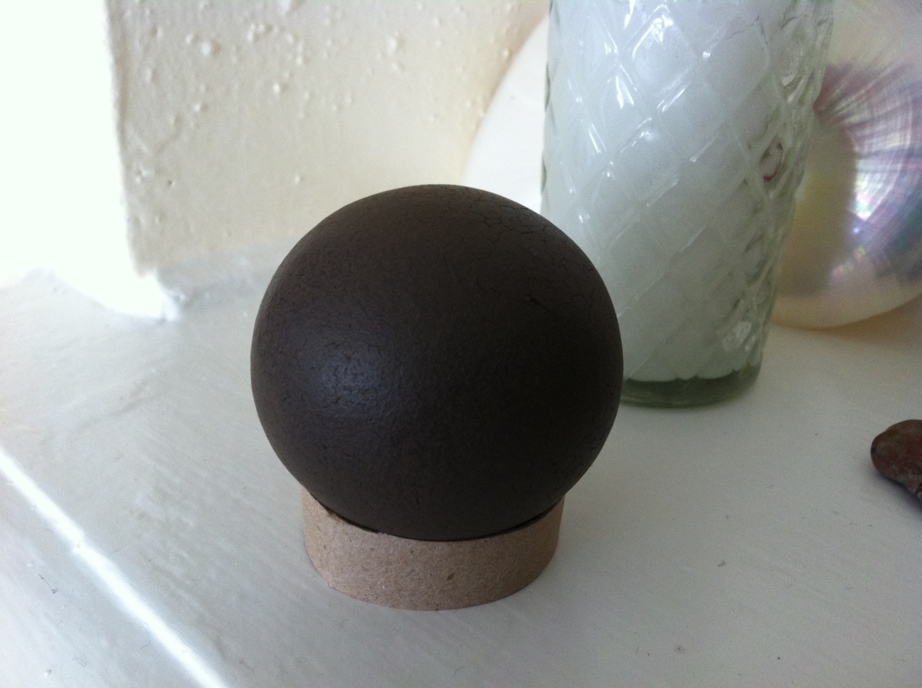 Following the directive to make it special, I used an avocado pit (left over from brunch earlier that day) as the core, making this no ordinary dorodango but an unstable seed bomb. I will be observing it over the weeks to come to see if it explodes.