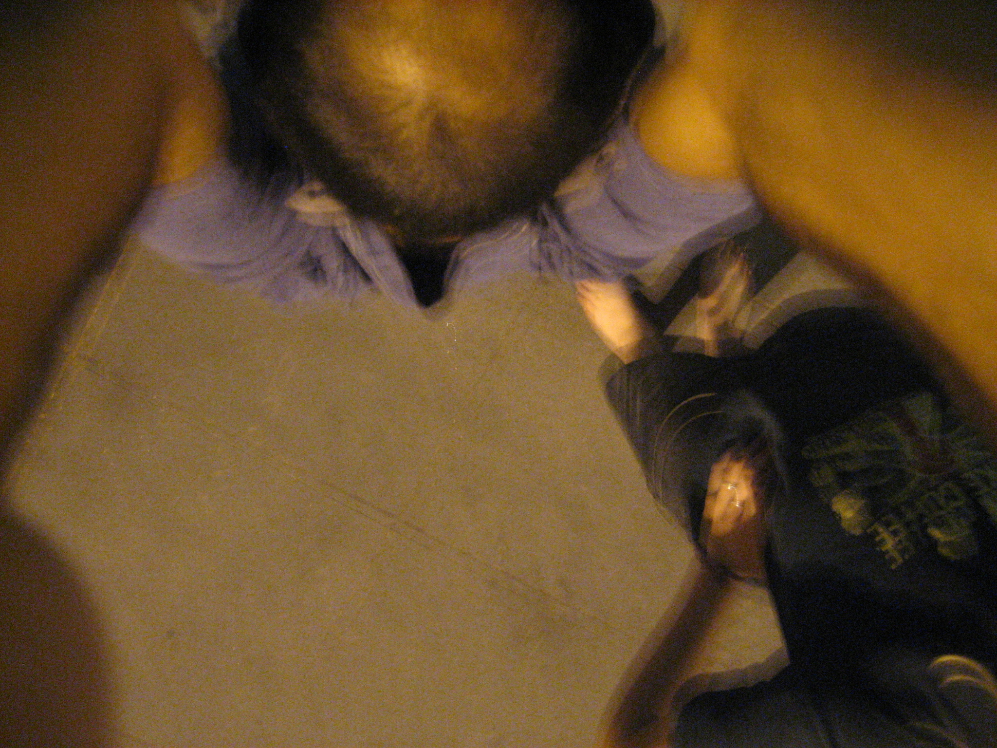 SEE THIS MAN? HE JUGGLES! He also wears a very fine flat cap. Obviously, he is cooler than most people around. Also, he is very strongly emoting his joy at seeing the Saturday escorting around a temporarily blind. And surprise of surprises, this was chosen as the "stranger showing intense emotion" picture. Also, we have no idea what his name is, tho, we believe he feels like and Erin or a Ben or even Aaron. (i used to juggle with this guy, and i *can't remember his name.* i feel awful. -S)