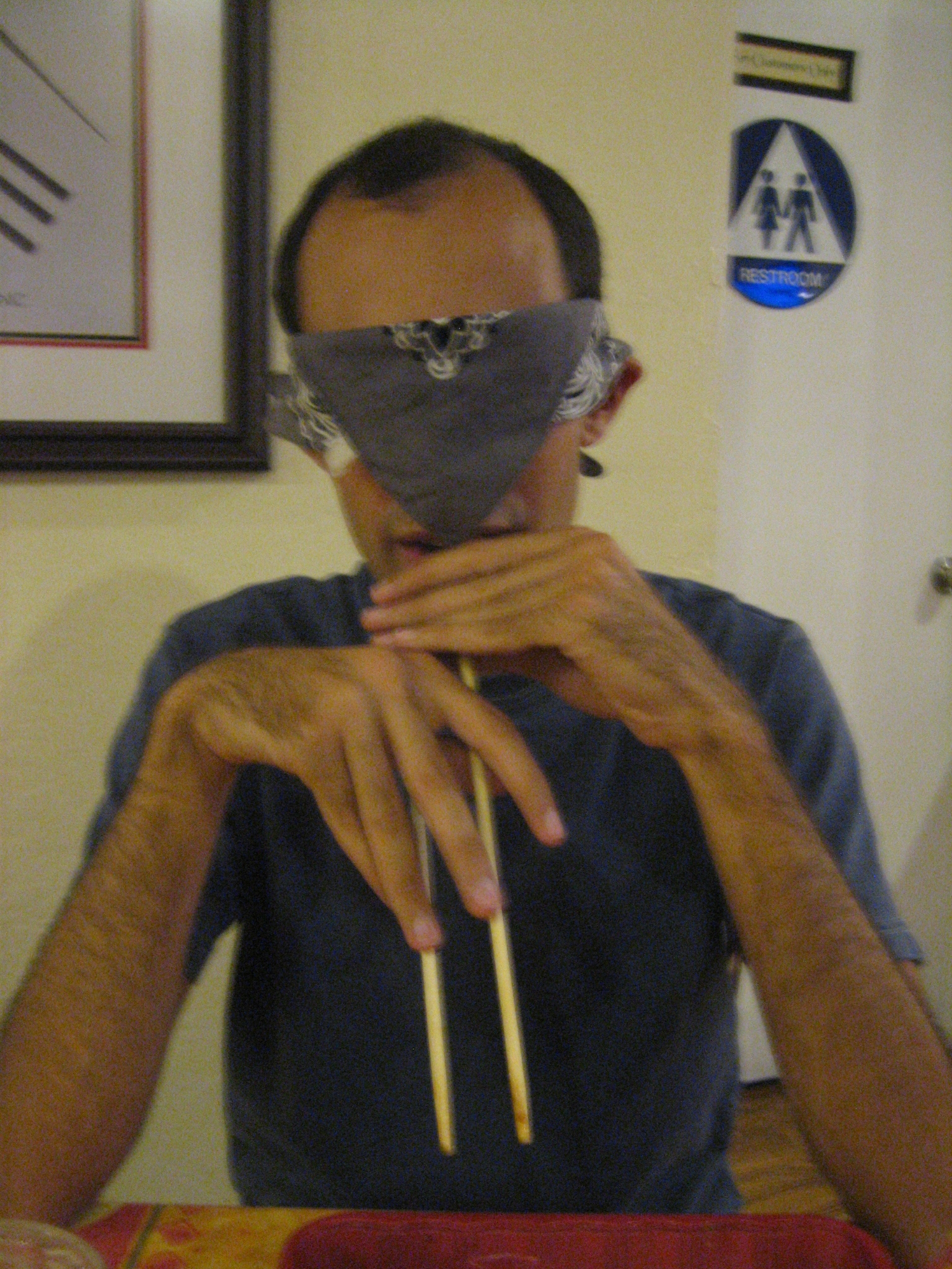 when it was the 4th's turn to be blind, it was pretty hard not to play tricks. man, he was a trooper! he started right out eating with chopsticks, and then when we came to a big plaza he *ran blind.* for realsies. there was nothing in his way and i watched out for danger, but i'm pretty sure if i tried to run blind i would fall on my eyeballs. he made it look pretty fun though. then he sought me like a blind animal while i slipped shadow-like around him, like very unfair tag, and man he was good at that too! he went after me like inexorable time, even got me one time. i told him times of day to keep him on the straight and narrow, and we played in a fountain. he was enraged by short poles, and had a good idea for a public beautification project. also he decided that things felt like colors. like he'd feel a thing and say "this feels brown." not, i think, like synaesthesia exactly, but he associated that texture with things colored brown. he was right... occasionally. See pics for more adventures!