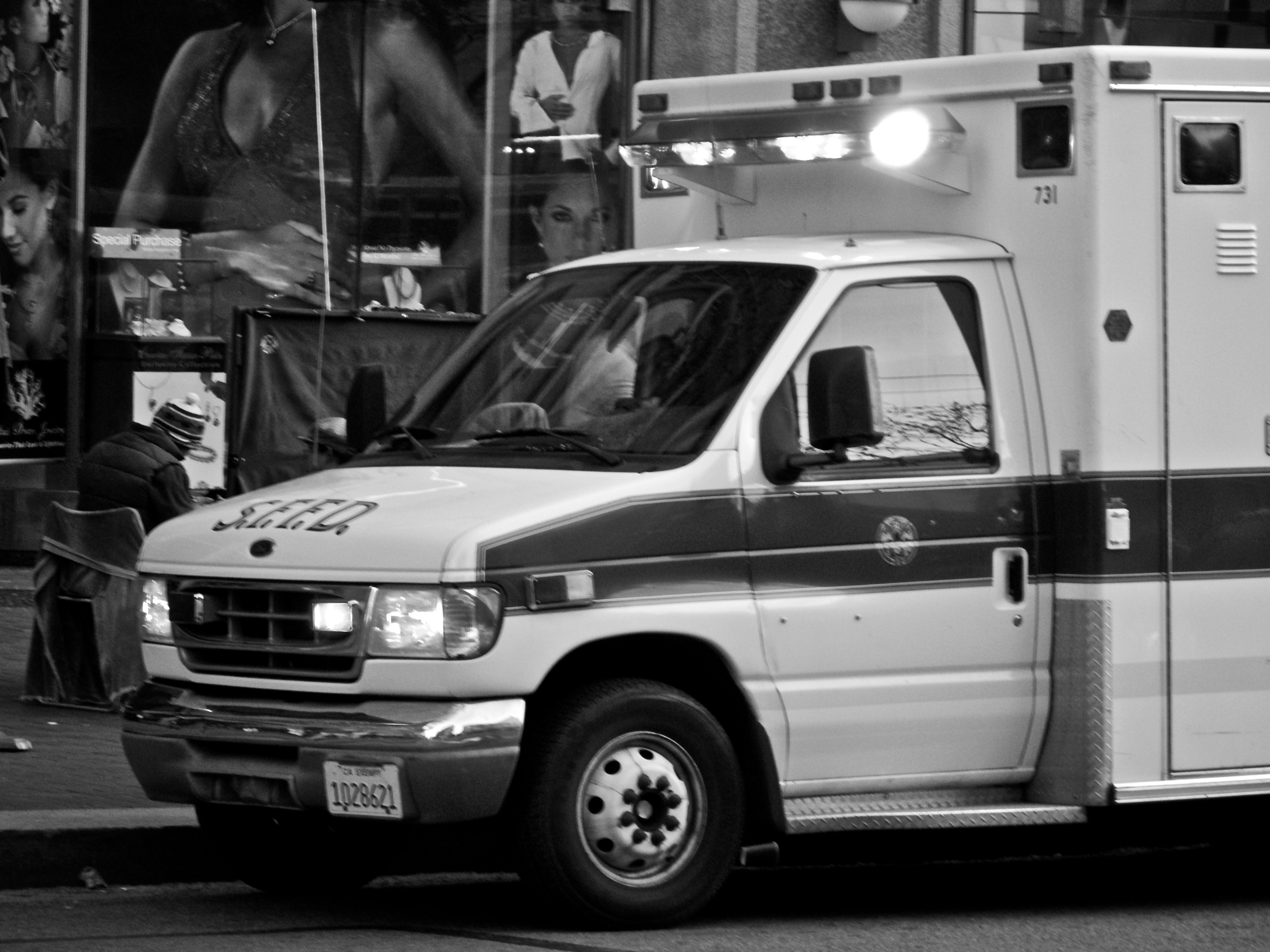 Just when I was starting to pick out interesting patterns in cloud formations and thinking that they might be possibly pushed to being 'fantastic', across the street, this ambulance pulls up. I guess someone may have shopped until they dropped. dum de dum de dum... Is that a burning cigerette but?