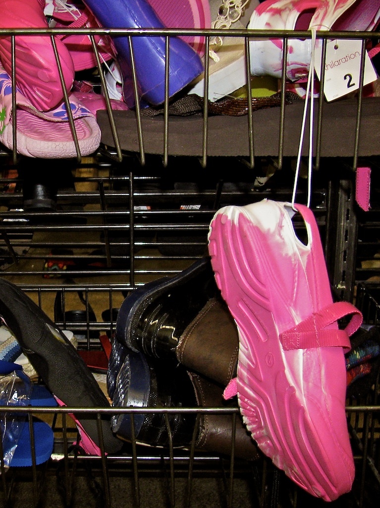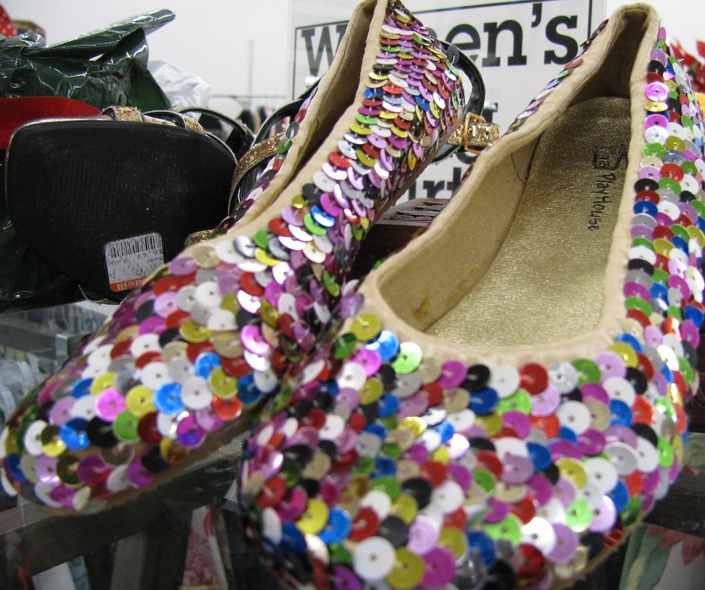 Well hello beautiful, and hello to your twin sister! Checking to ensure it was at least possible an 18 year old could fit into the shoes, I snatched them up and headed up to the counter, ready to plunk down my $4.99: