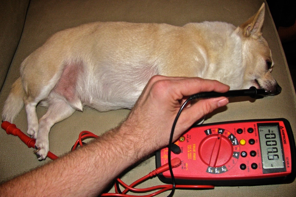 I then decided to compare it's output against the "Pooch-o-voltaic" that had taken up residence next to me: