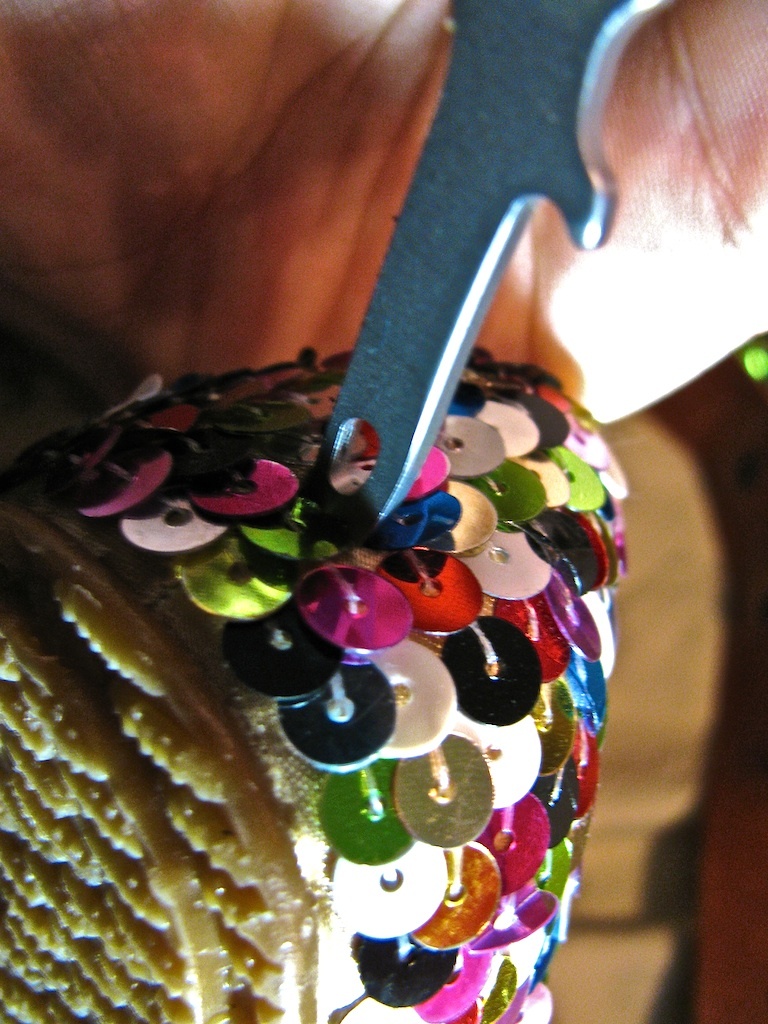 Head down, I turned the corner, when a sequined sparkle caught my eye: