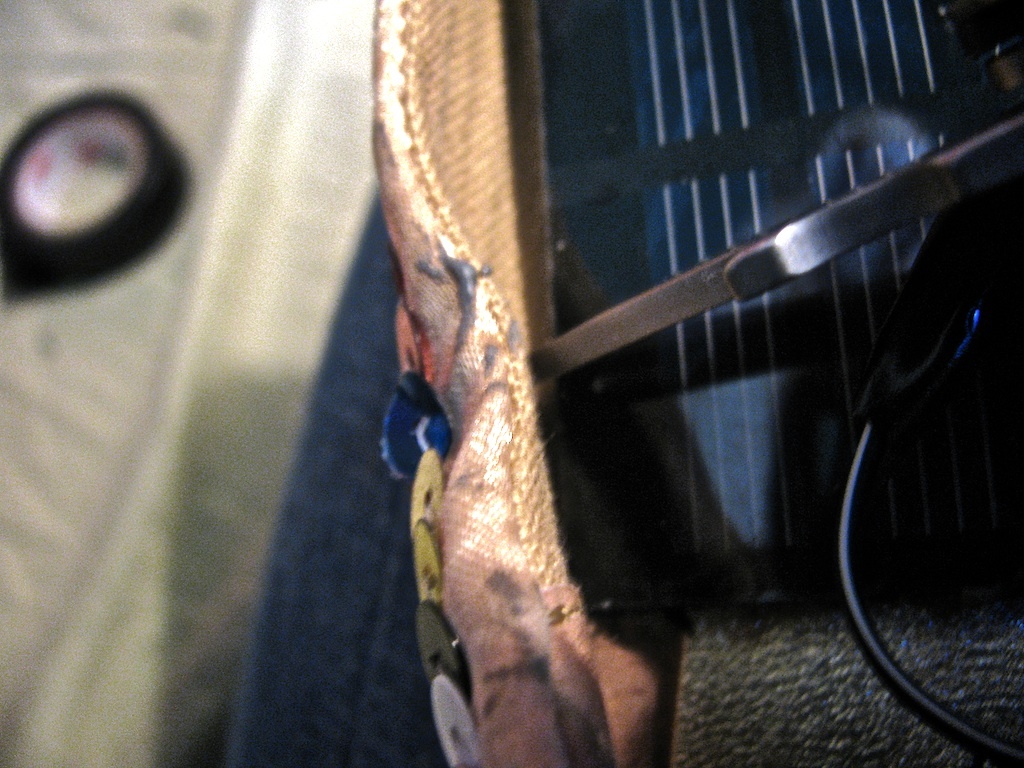 Anyhow, now that the lace is done up, lets install the lights. There are a lot of them, but a leather punch and superglue make quick work of the task: