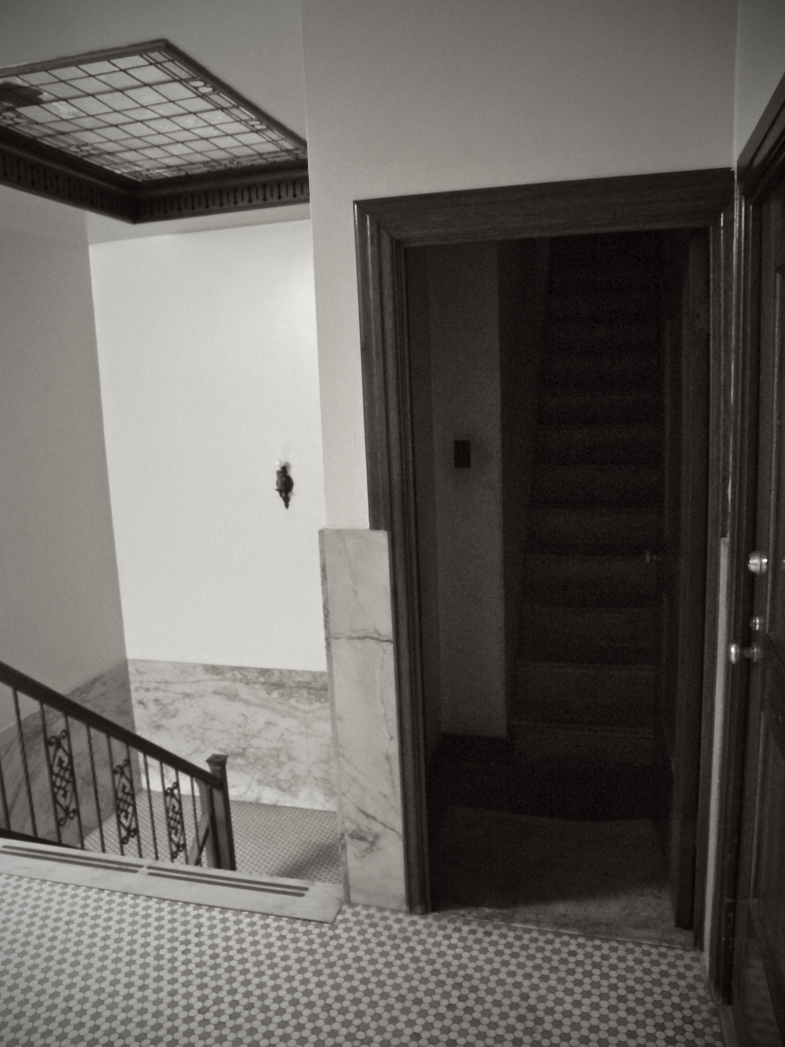 I'm a bit early, but decide to head in anyways, and play around on the net for a while before the morning scrum. On the way up the stairs, I notice a door that usually isn't open...