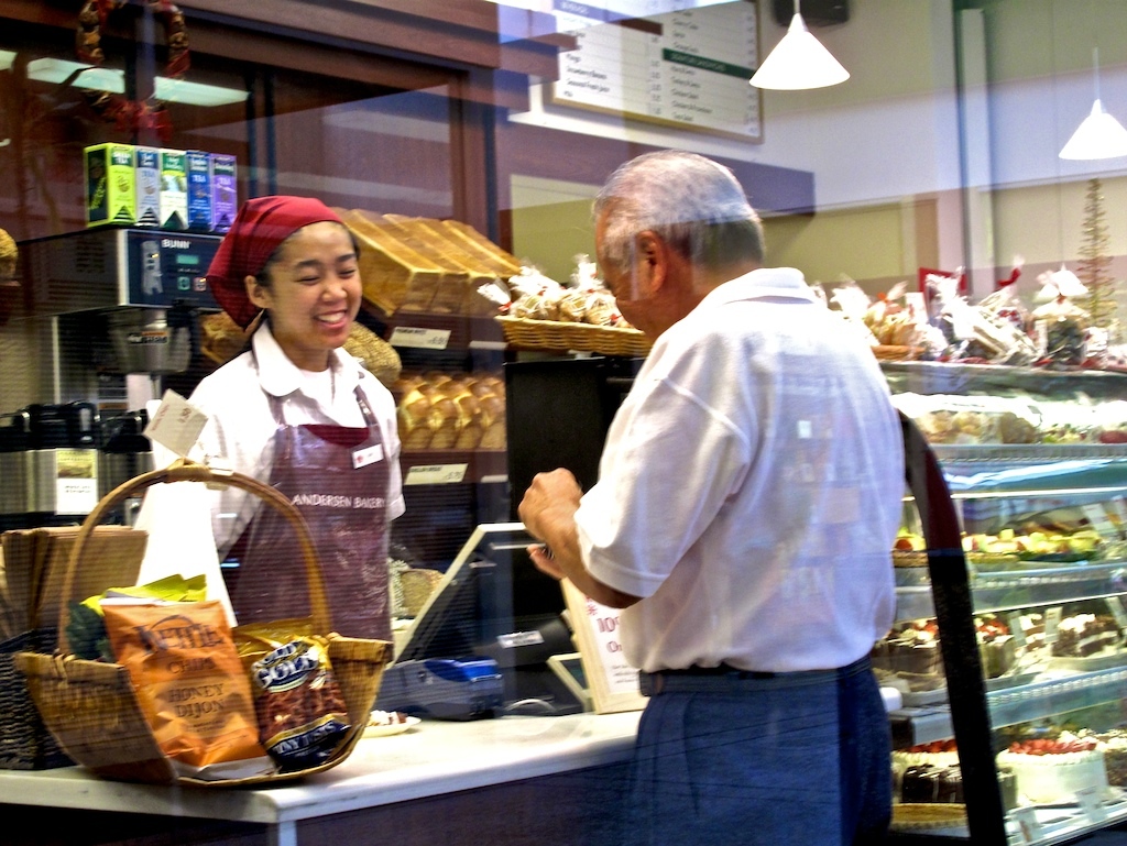 Lots of smiles here at the bakery, through the glass. Everyone likes pasteries and sugar, it seems. Life as a diabetic must really suck.