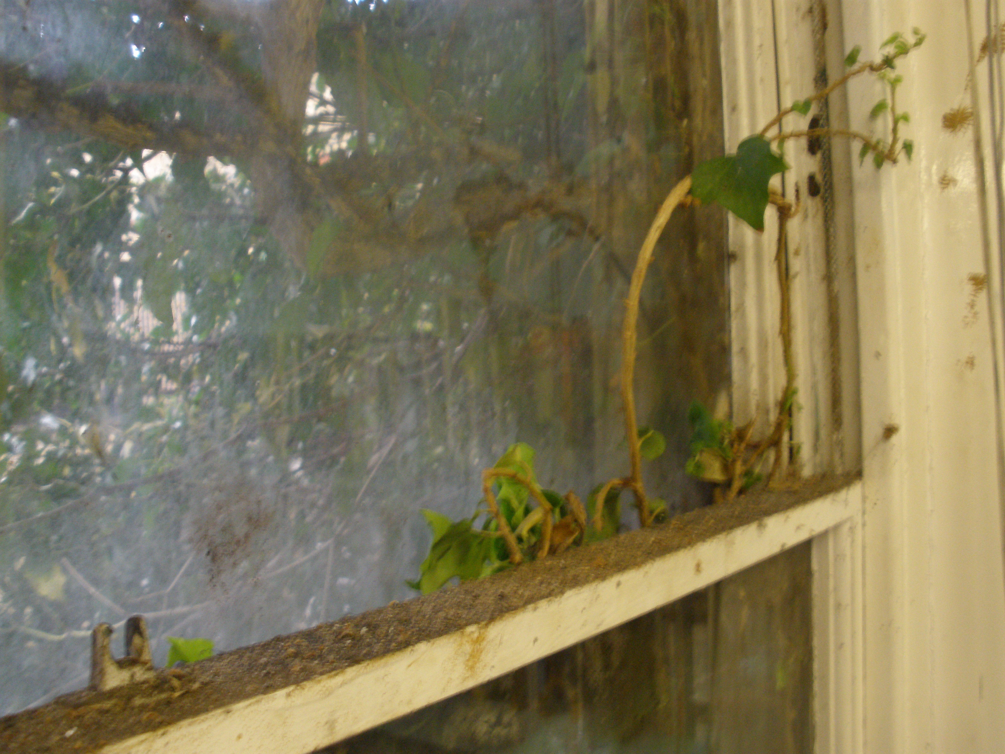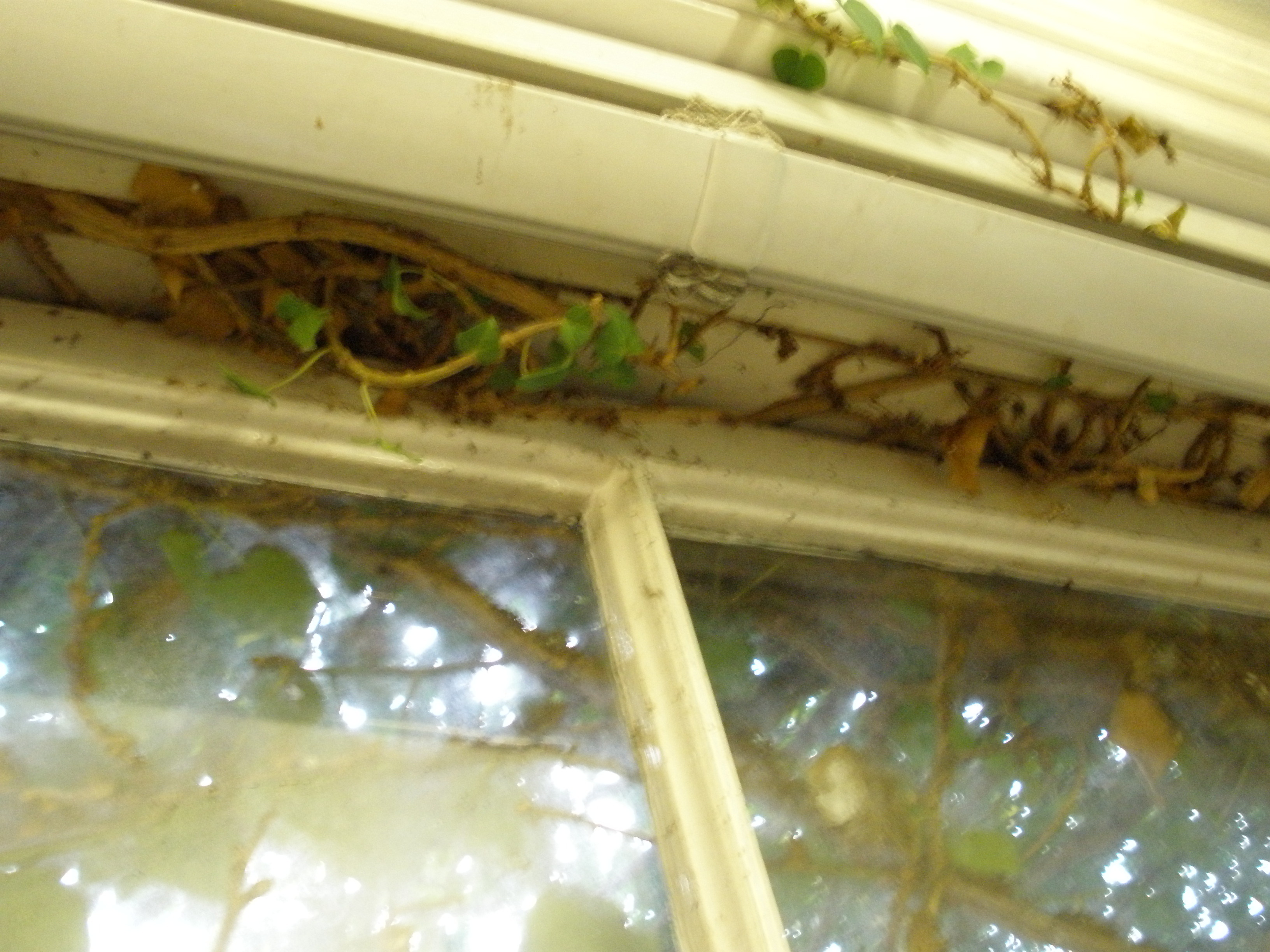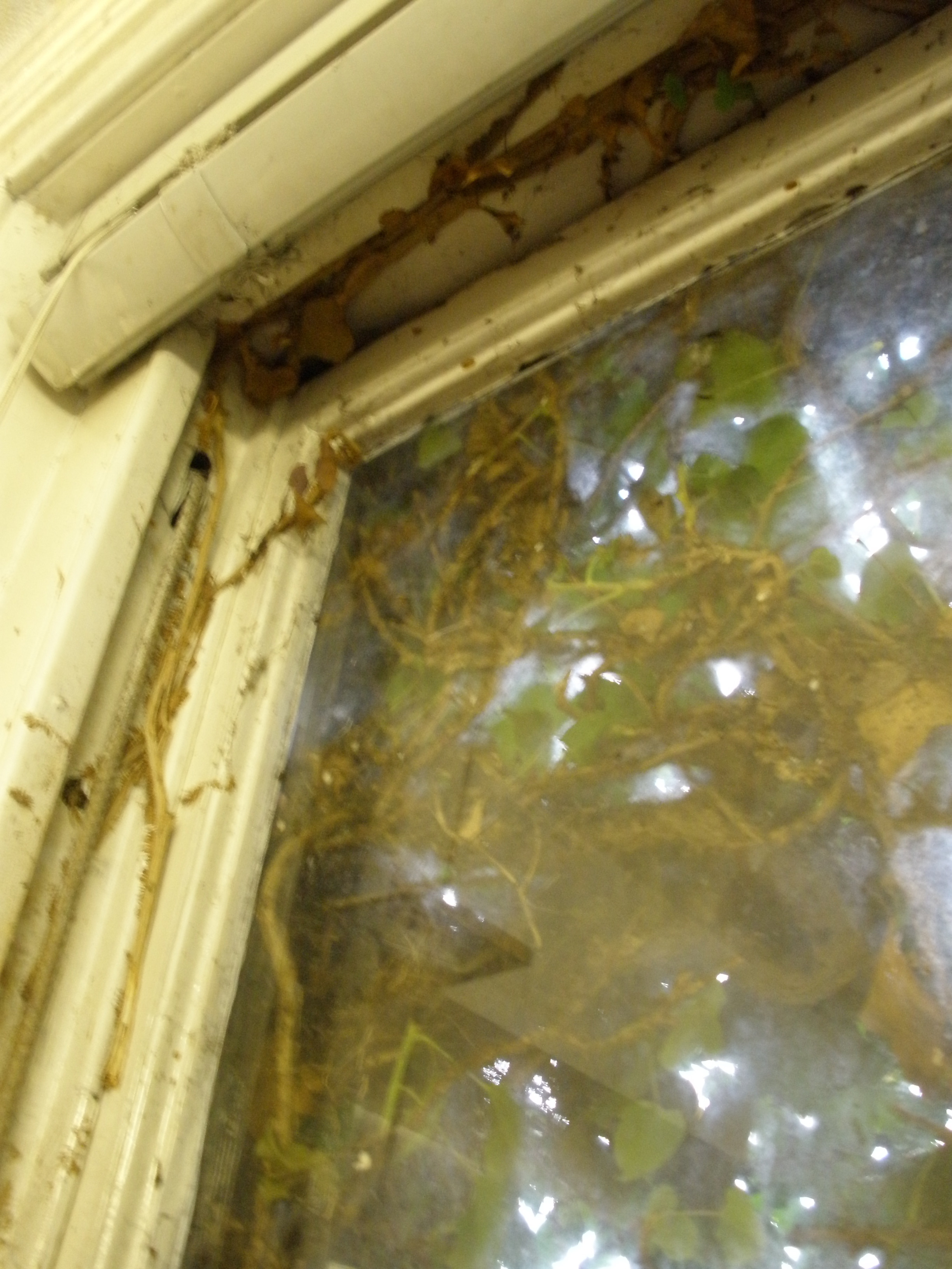 Nevertheless, the current attack is on several fronts. The bulk of the shoots seem to have tried to invade using the cover of the blinds, solidifying their position around the frame before moving into the rest of the room.